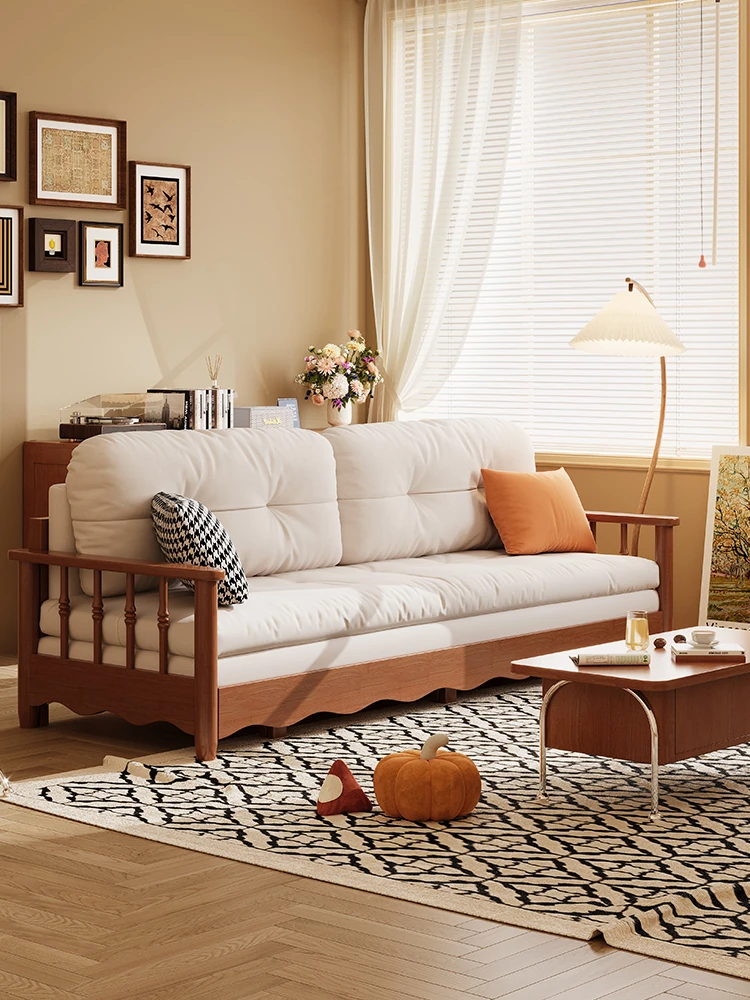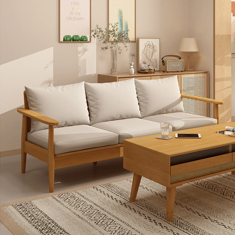 新中式フルウッド布製ソファー|洗濯可能&二用途|北欧・和風スタイル|冬夏対応|収納機能付き|小型スペースに最適なリビングソファ