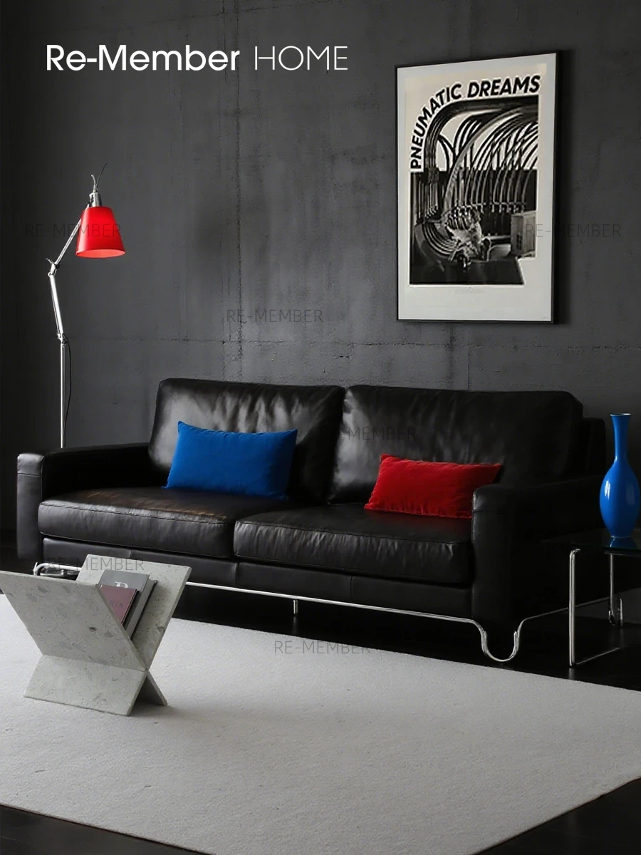 Re北欧スタイルの中古バウハウスソファ - 高級ステンレススチールと本革使用、カラメルブラックのヴィンテージ感漂うダウンオイルワックス仕上げで、あなたのリビングをスタイリッシュに演出します!
