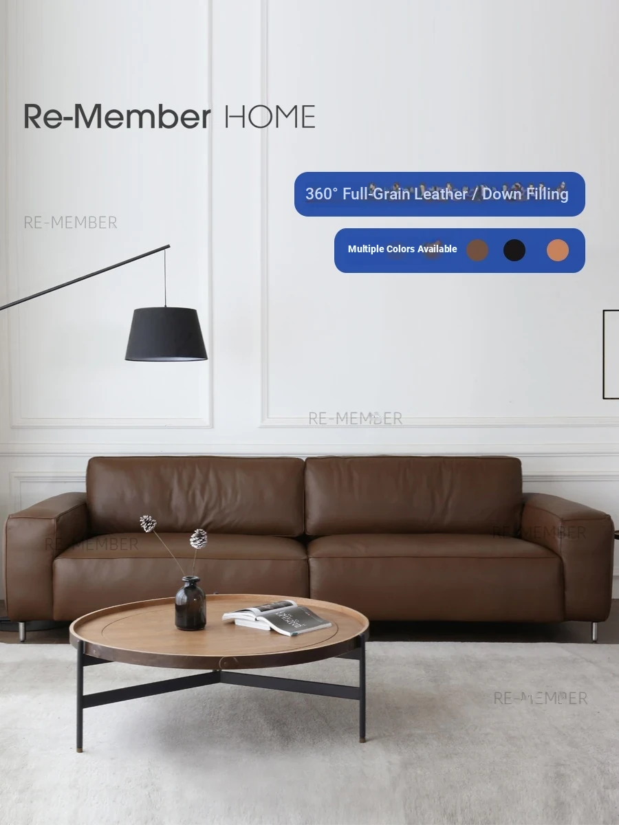 Re-MemberHome Imported Top-Grain Leather Italian Minimalist Modern Nordic Retro Split Sofa - Stylish Design for Ultimate Comfort and Elegance