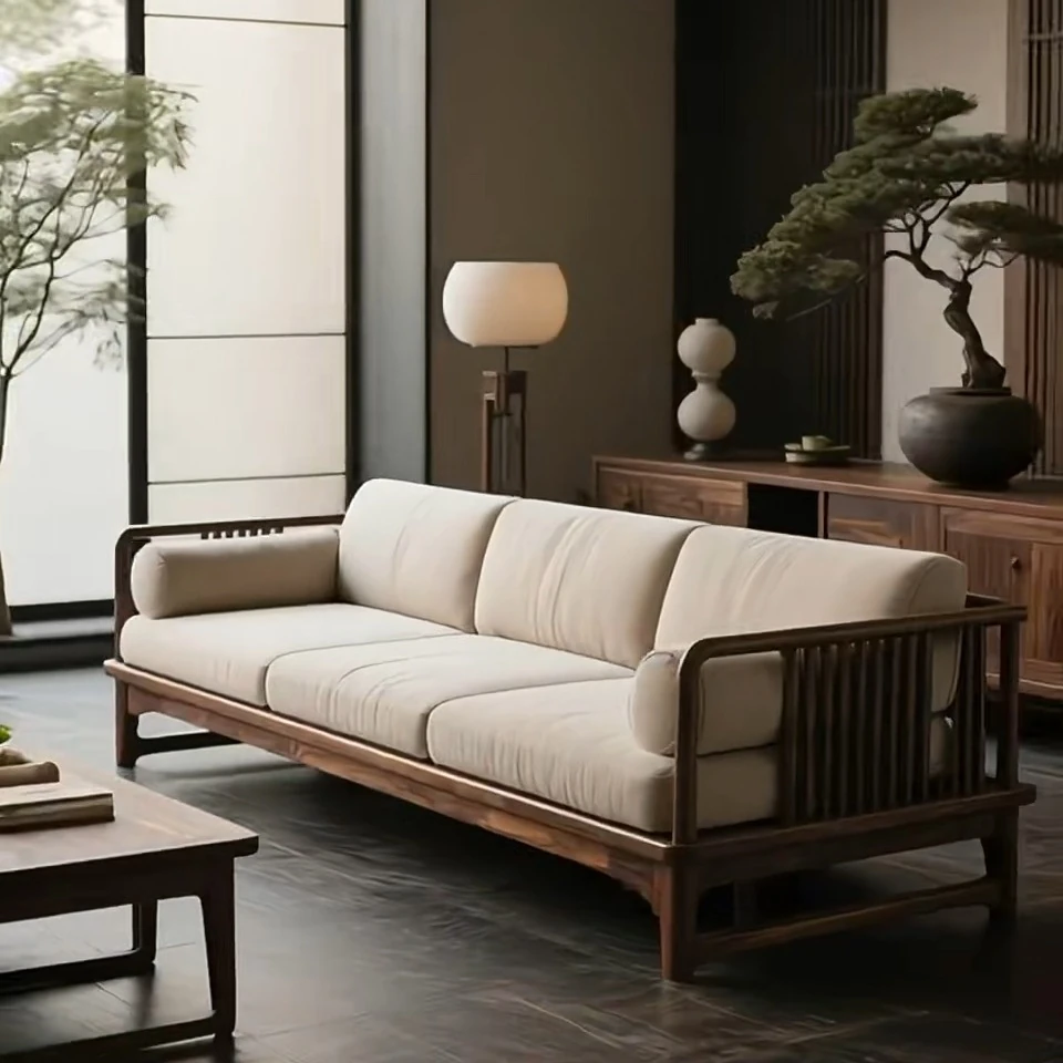 2025 New Chinese Style Solid Wood Sofa - Modern Walnut Small Apartment Sofa for Living Room, Inspired by Song Aesthetics