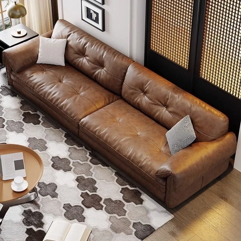Re-MemberHome輸入の本革イタリア製シンプルモダン北欧レトロ分離型ストレートソファ – 高品質な本革使用、スタイリッシュなデザインで、あなたのリビングに洗練された雰囲気をプラス!
