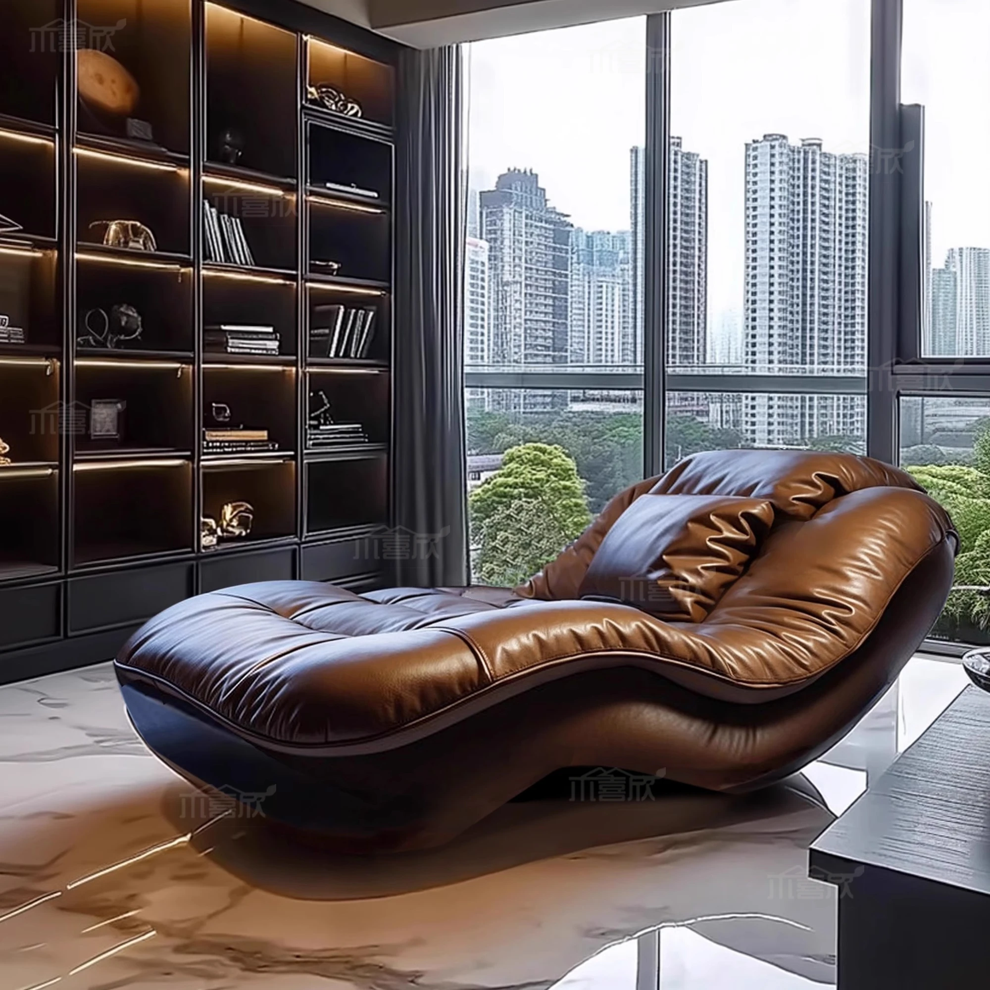 高級感溢れる貴妃椅子 - リラクゼーションに最適なイタリアンデザインの真皮ソファ。主寝室やリビングにぴったりの一人用リクライニングチェア。くつろぎのひとときをお楽しみください!