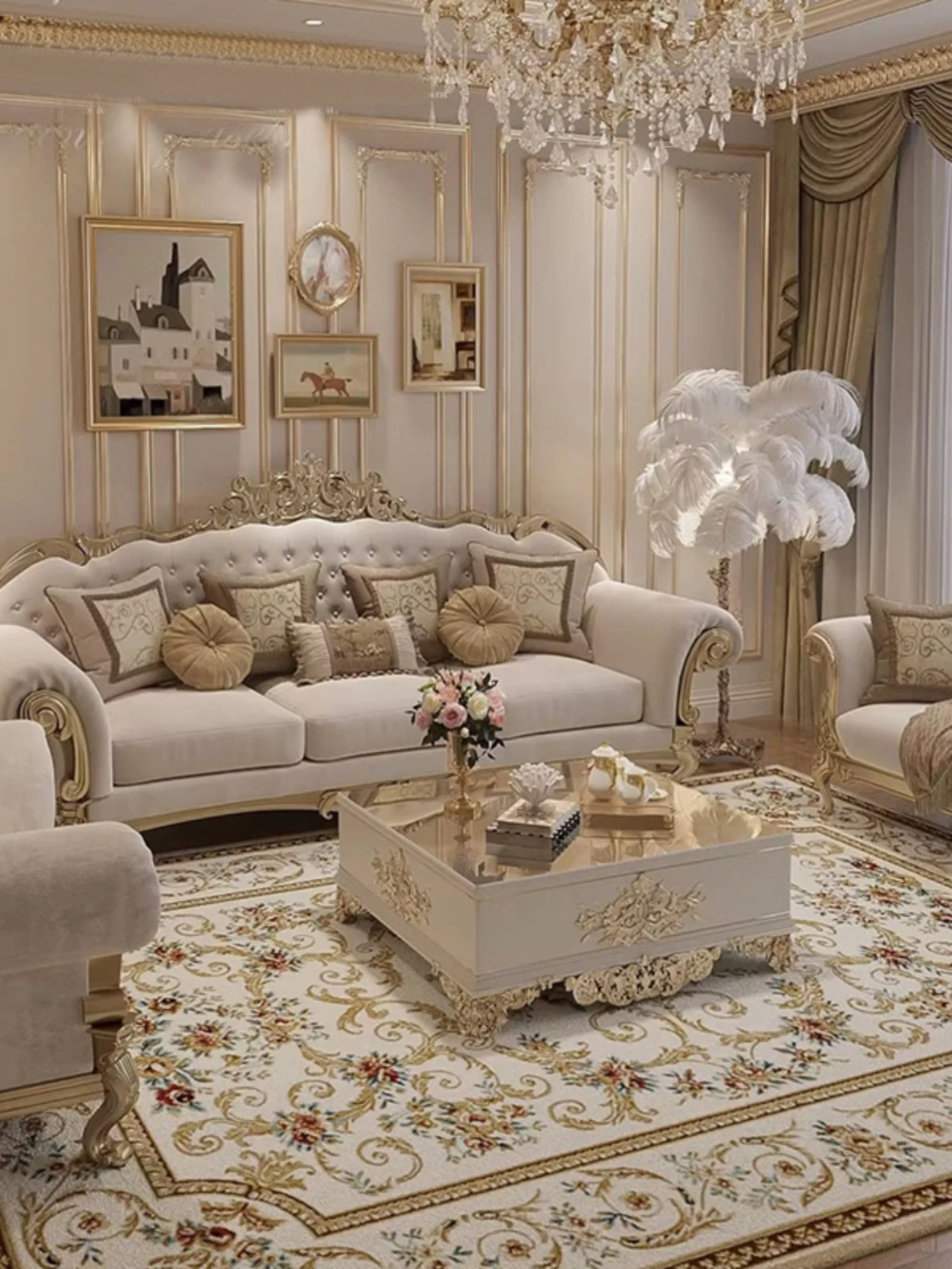 フレンチロイヤルスタイルの無垢材彫刻リビングルームソファセット - 高級感溢れる新しい軽奢ネオクラシック家具。洗練されたデザインで、優雅な空間を演出します。