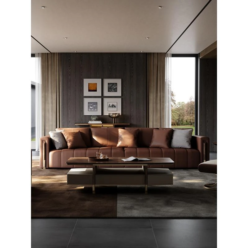 イタリアンラグジュアリー全皮レザーソファ ヴィラリビングにぴったりな直列5人掛け シンプルでモダンな本革ソファ