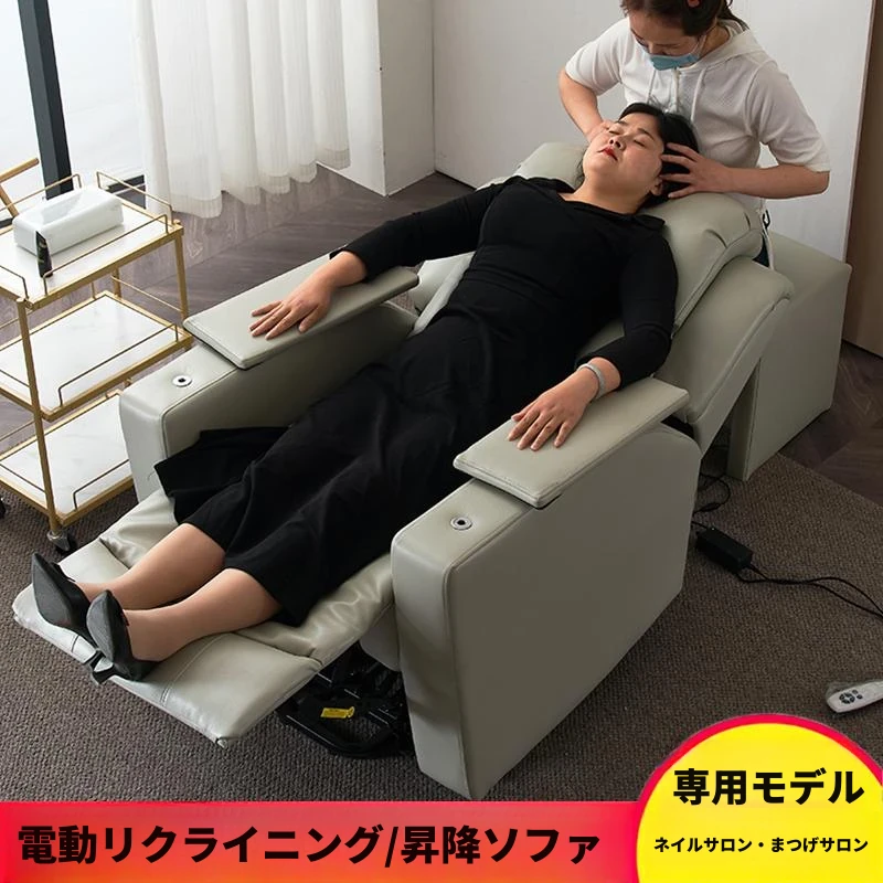 リクライニング可能な電動ネイルサロン用ソファチェア - 美容院やまつげエクステに最適!180度フラットになる革新的なデザインで、快適な施術体験を提供します。あなたのサロンをグレードアップするこの一品をお見逃しなく!