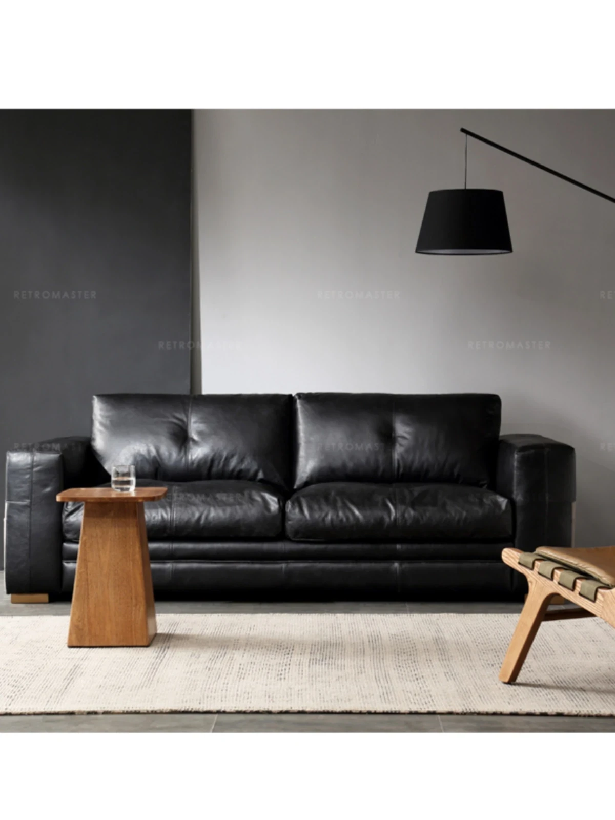 2025年新款!新中式実木製ソファー - 小型リビングにぴったりなダブルタイプ!モダンでシンプルなデザイン、真皮と胡桃木の贅沢なコンビネーション!快適な座り心地を提供します。あなたの空間を優雅に彩る一品です!