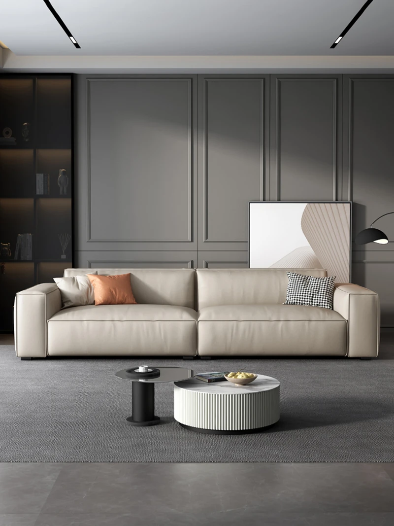 2023年新作!軽奢全真皮ソファー - 別荘や大平層にぴったりなイタリアンミニマルデザインのストレートソファ。洗練されたスタイルと快適な座り心地で、リビングを格上げします!
