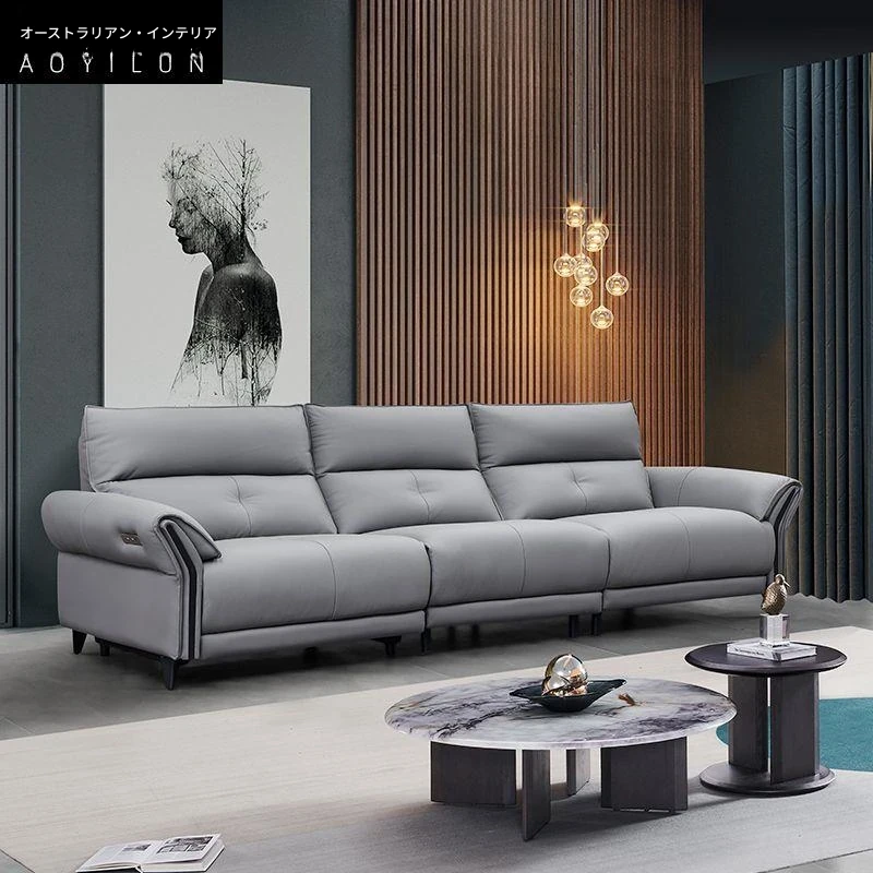 壁に寄りかからない電動本革ソファ、ハイバックデザインのリビングルーム用3人掛け、機能調整可能なイタリアンラグジュアリー。心地よい空間を演出し、贅沢なひとときをお届けします!