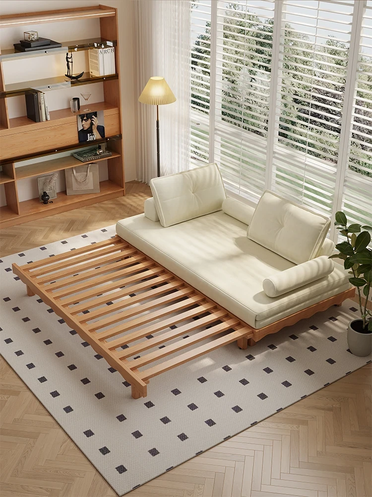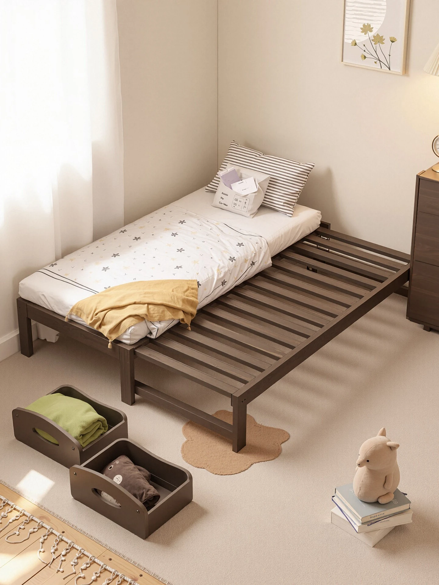 全実木製の伸縮式ベッド!小型住宅に最適なリビングや寝室用のサイドプルソファベッド、畳スタイルの折りたたみベッド。スペースを有効活用し、快適な睡眠空間を実現します!