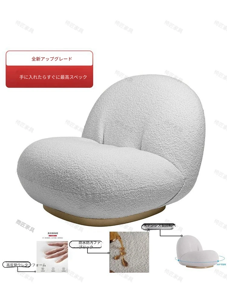 パチャチェア 雲のようなふわふわソファー 雪梨デザインのラウンドチェア 羊毛の優しい触感 かわいい白いデザイン コンパクトな回転式 一人掛けソファー 小スペースにぴったり!