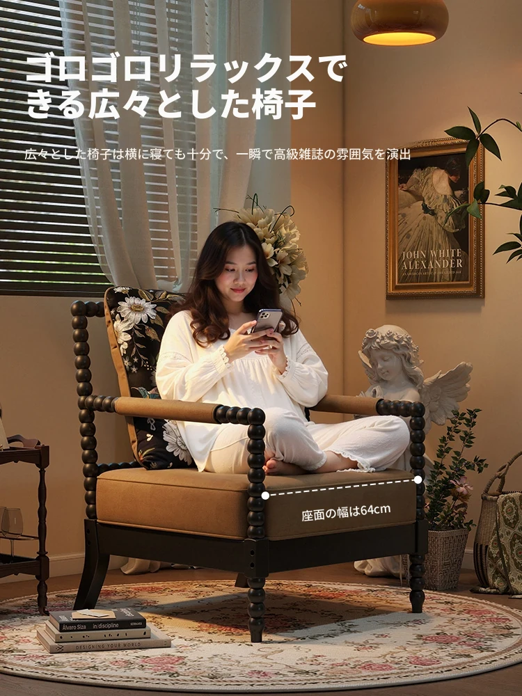 越之中古風のリラックスソファ|一人掛け|バルコニー、寝室、リビングに最適|小型スペースにもぴったり|トレンディなサボテンデザインでおしゃれな空間を演出!