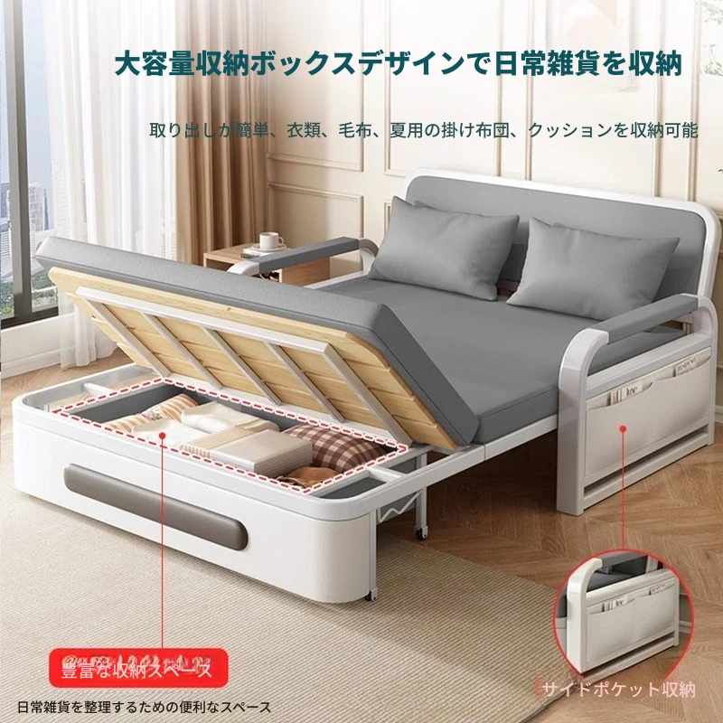 折りたたみソファベッド 一体型 多機能 小型リビングに最適!2025年新作 スライド式 シングル・ダブル兼用伸縮ベッドで、スペースを有効活用!快適な睡眠空間を実現します。