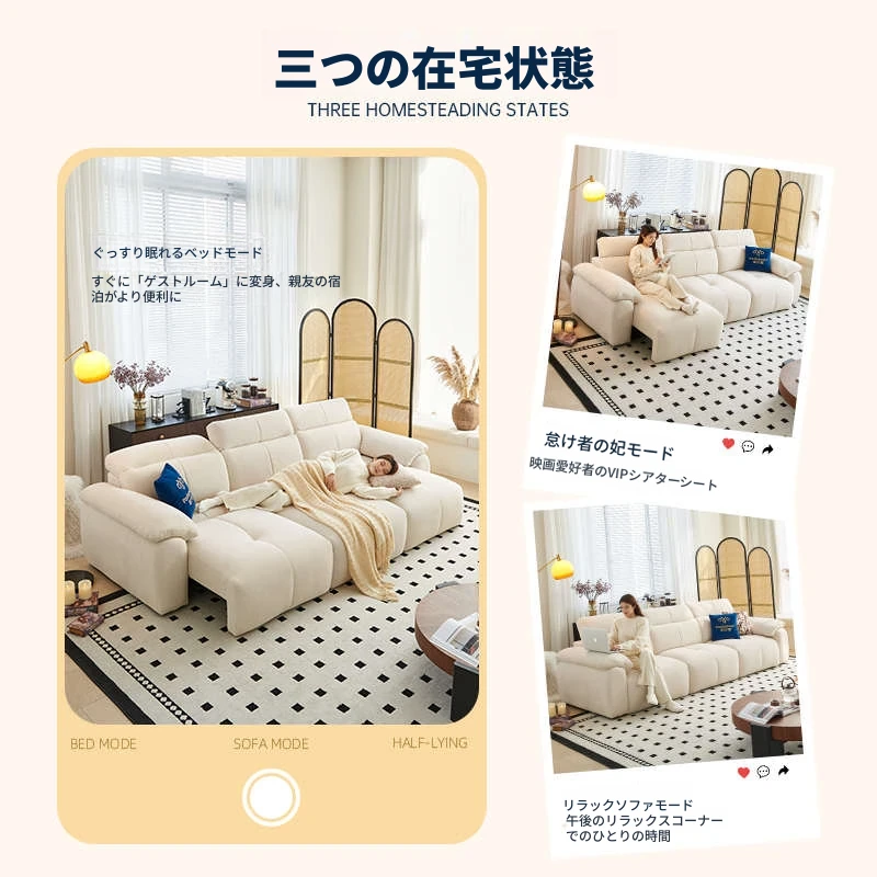 現代的シンプルで折りたたみ式の多機能リビングソファ、話題の新作!電動ソファベッドで、小さな部屋にもぴったりな2WAYデザイン。快適な座り心地と便利さを兼ね備えたアイテムです。