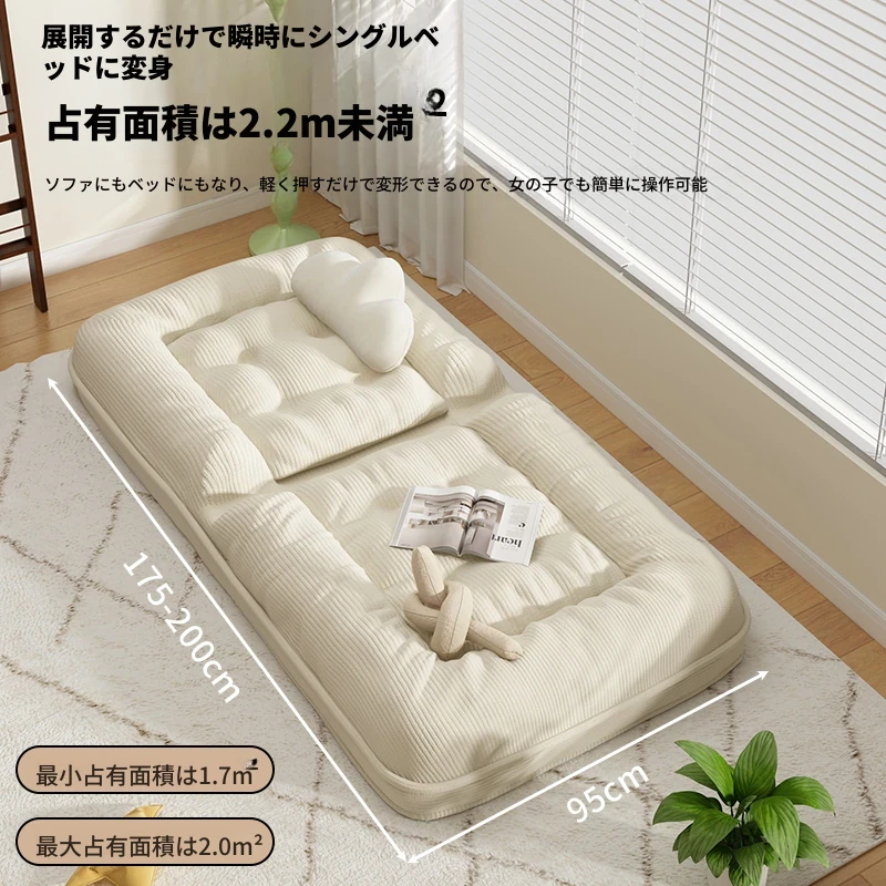電動クリームソファベッド、機能的に伸縮可能で折りたたみ式。壁際にぴったりフィットする猫用ソファ。おしゃれで快適なリビング空間を演出!