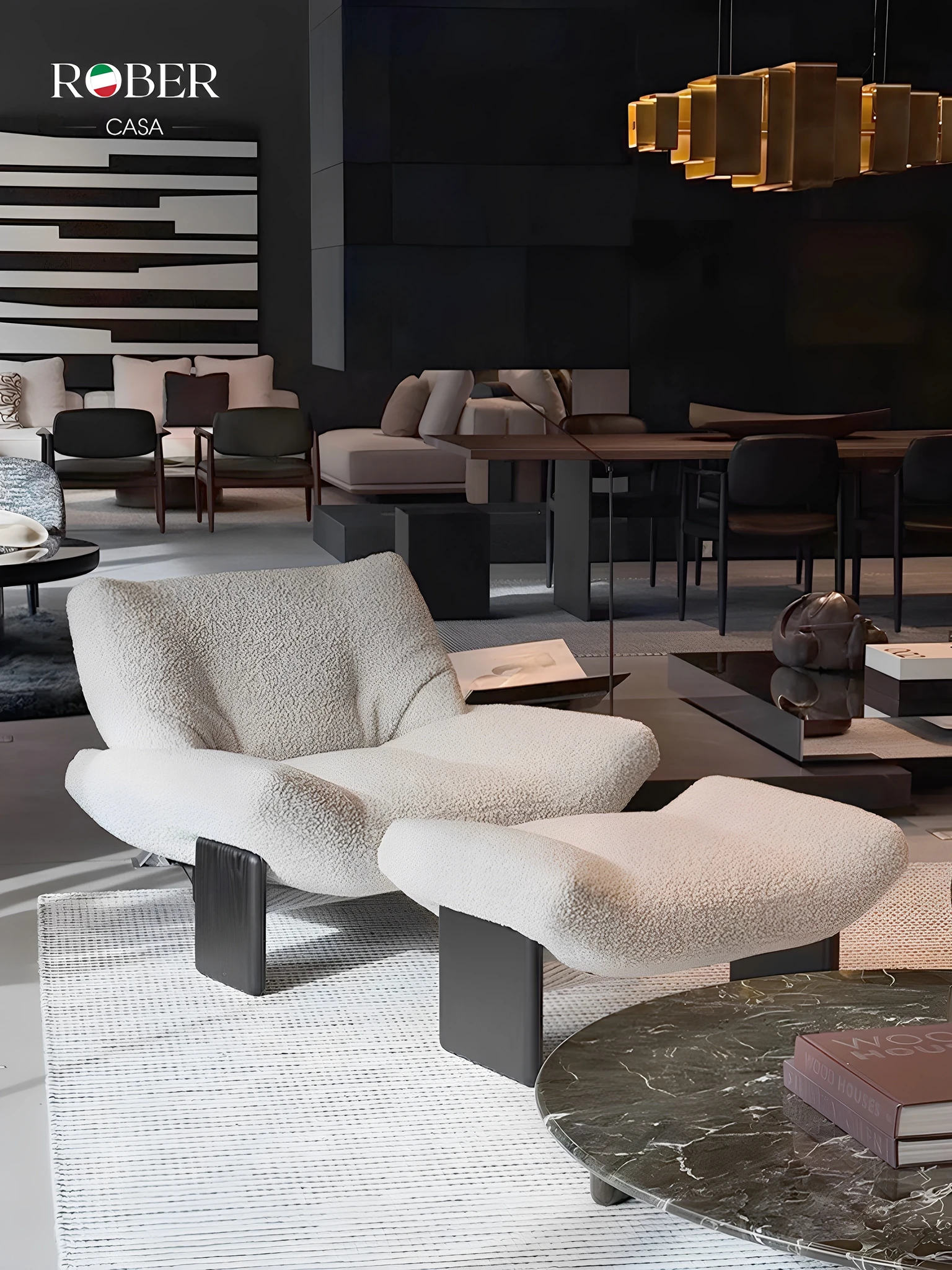 2025 New Luxury Leather Lounge Chair - Designer Living Room Sofa for Open Concept Spaces - Stylish and Comfortable Single Seat