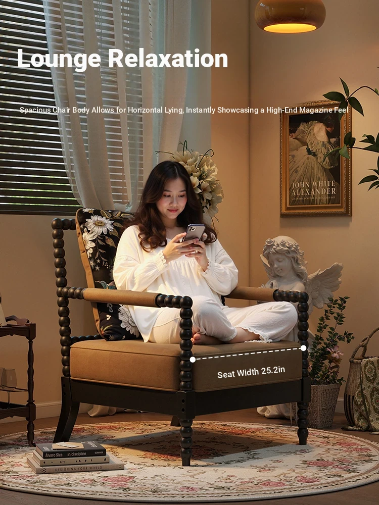 French Vintage Single Sofa - Antique Pearl Chair, American Light Luxury for Living Room and Bedroom, Solid Wood Tiger Chair for Relaxation.