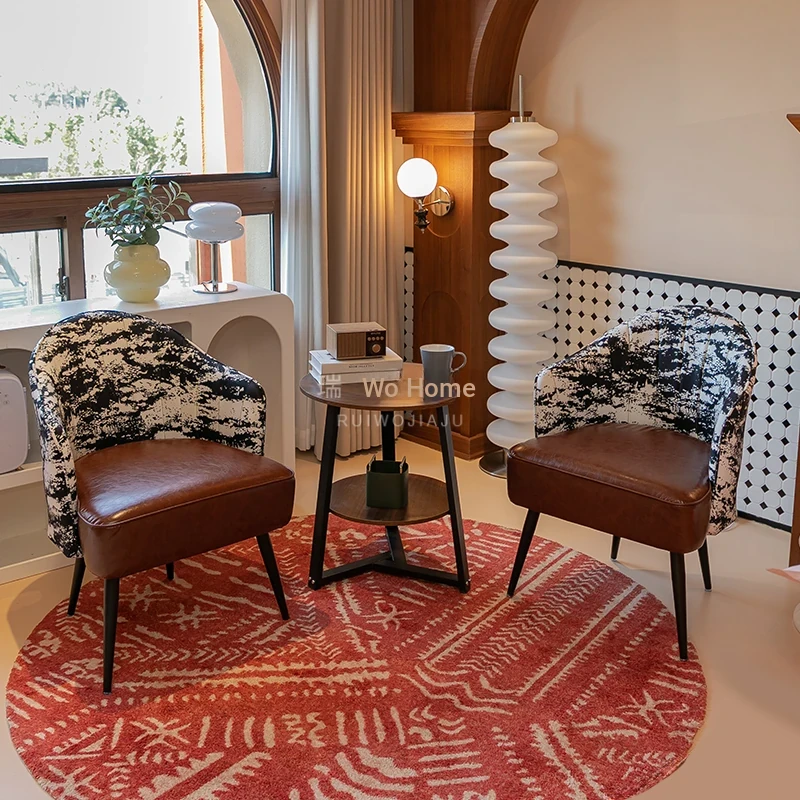Stylish Italian Minimalist Single Sofa Chair - Creative Vintage Fabric Armchair for Living Room, Combining Leather and Fabric for Unique Comfort and Design