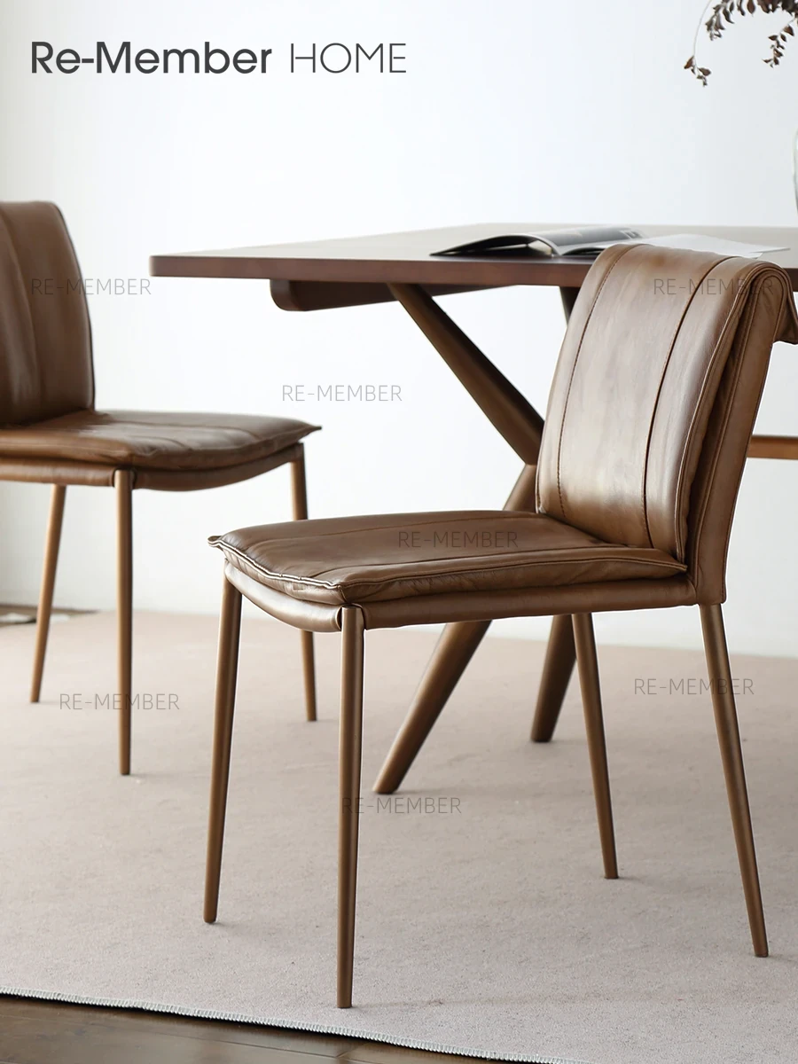 Nordic Vintage American Style Iron Waxed Leather Upholstered Dining Chair - Elegant Italian-Backed Soft Chair for Luxurious Home Use
