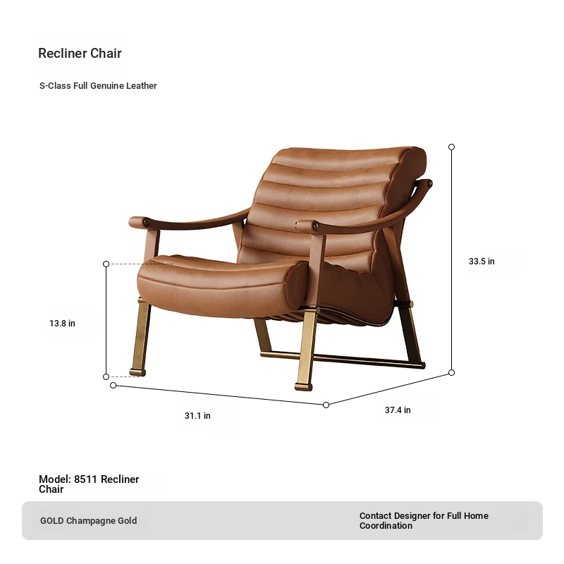 Lounge Chair/S Grade Full Leather/Champagne Gold
