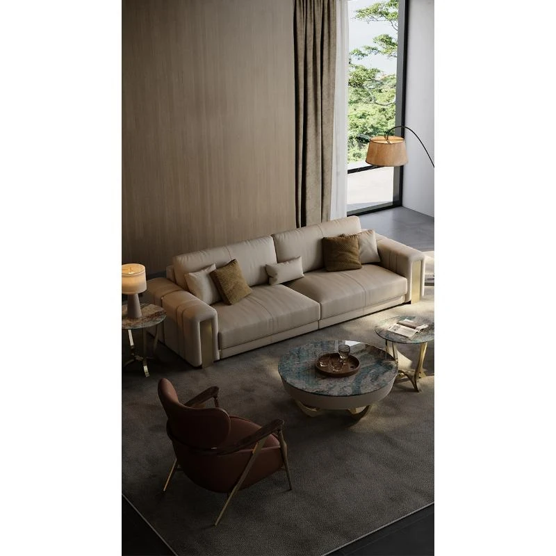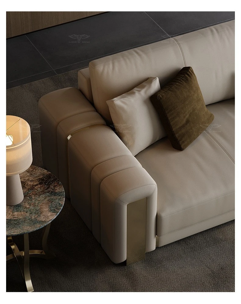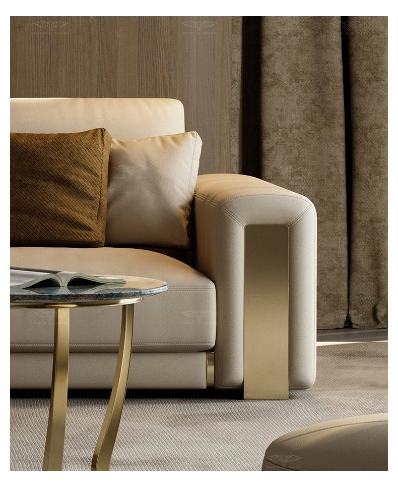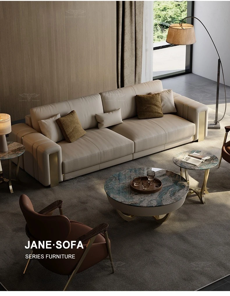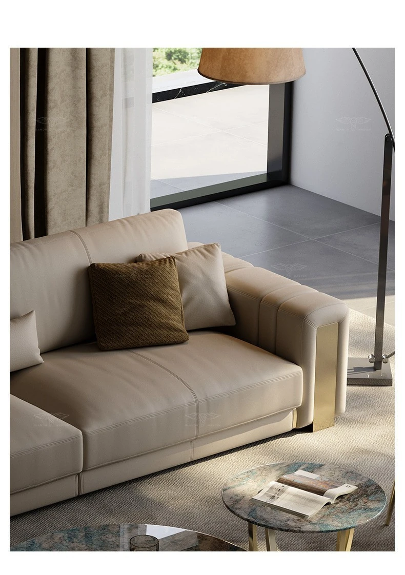 2023 New Luxury Genuine Leather Sofa - Italian Minimalist Straight Sofa for Villa and Spacious Living Room