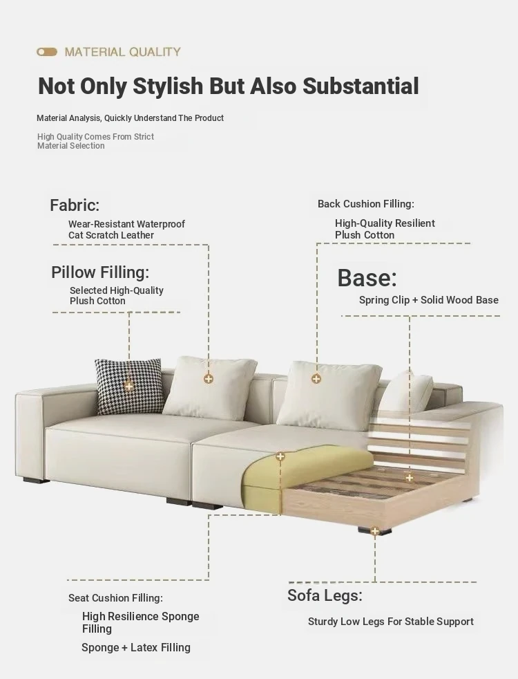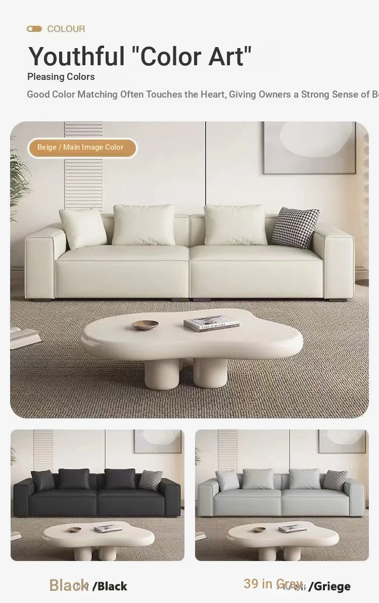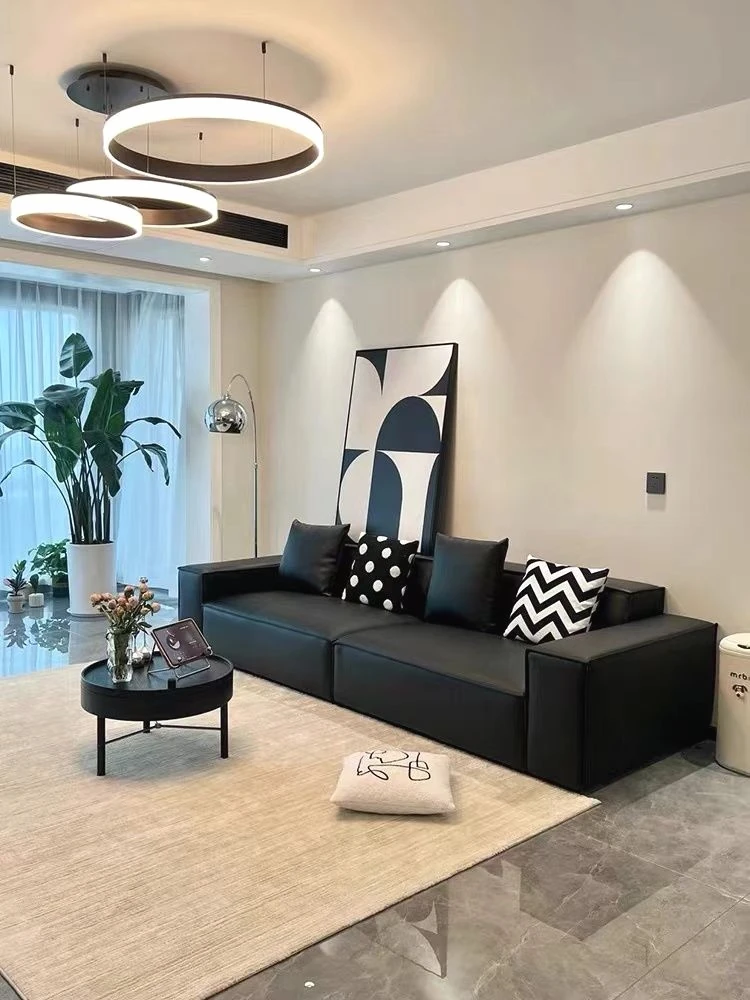2024 New Italian Minimalist Black Sofa - Modern Tech Fabric, Simple Design for Small Living Rooms, Stylish Block Cushion for Cozy Comfort