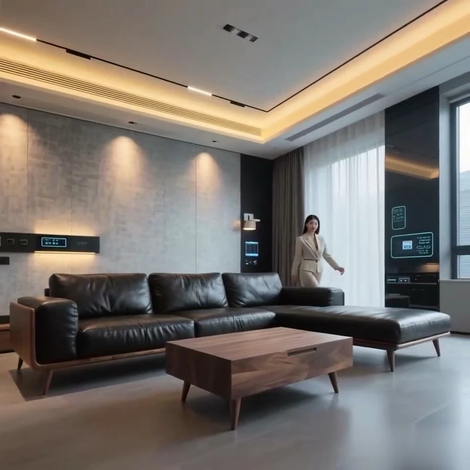 2025 New Arrival Solid Wood Sofa Set - Modern L-Shaped Corner Chaise Lounge with Ottoman, Elegant New Chinese Style for Your Living Room