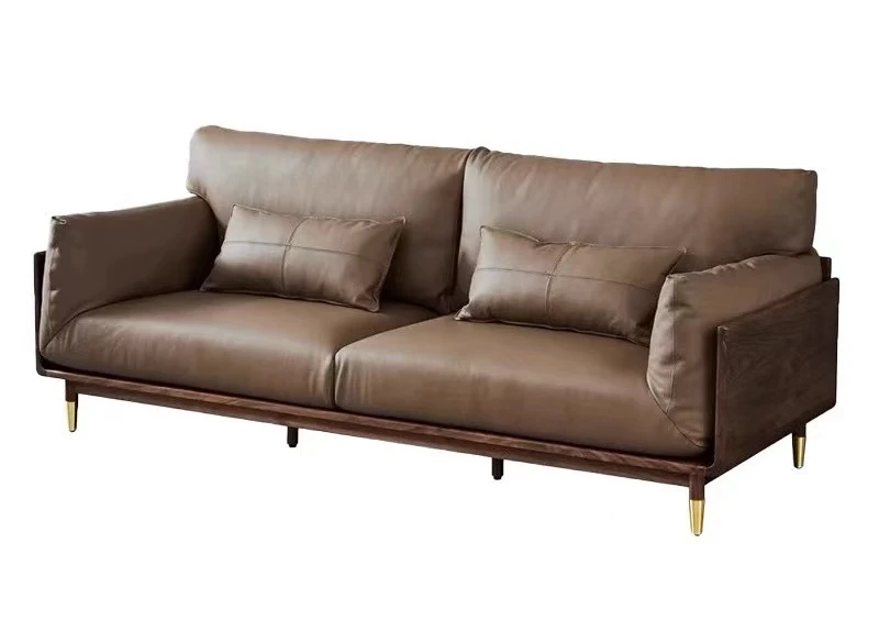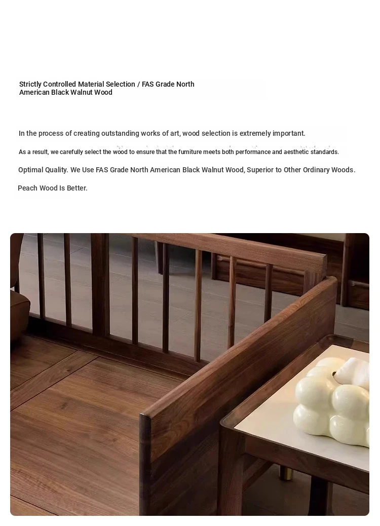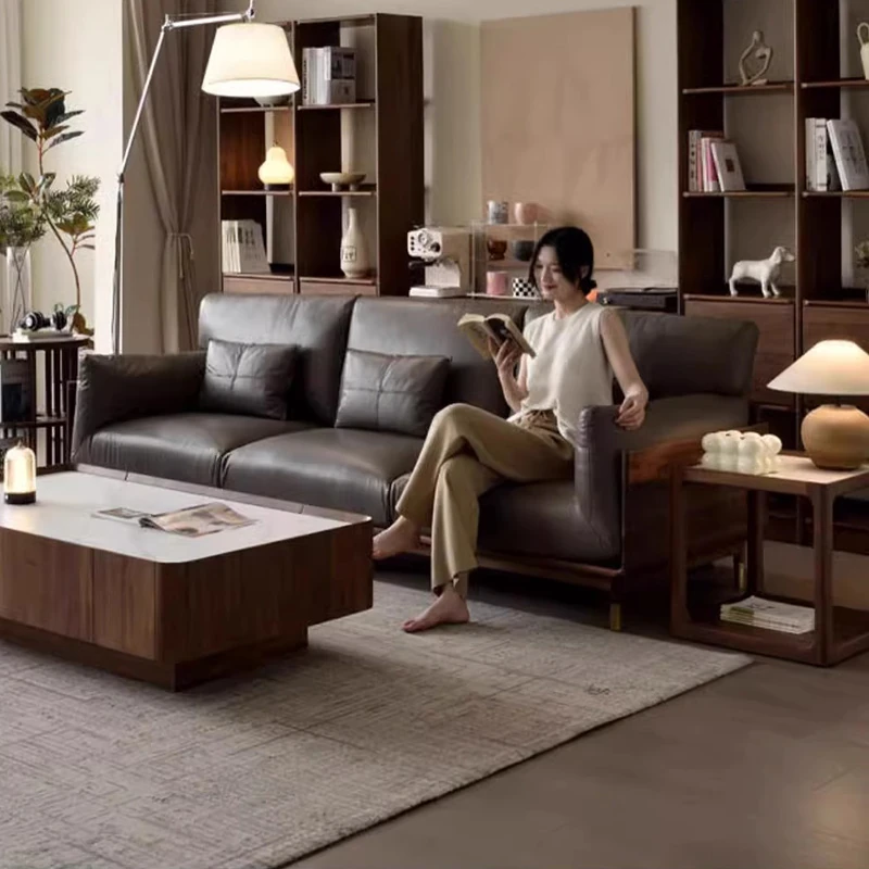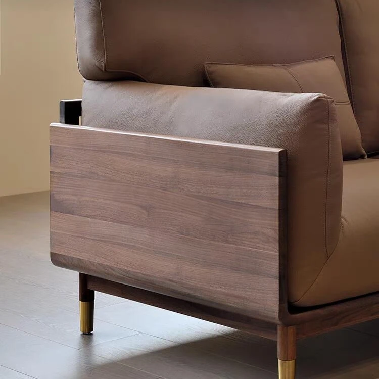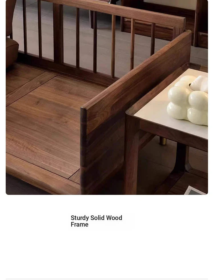 2025 New Chinese Style Solid Wood Sofa - High-End Straight-Line Single and Double Seat Sofa for Living Room, Zen Minimalist Design in Walnut Wood