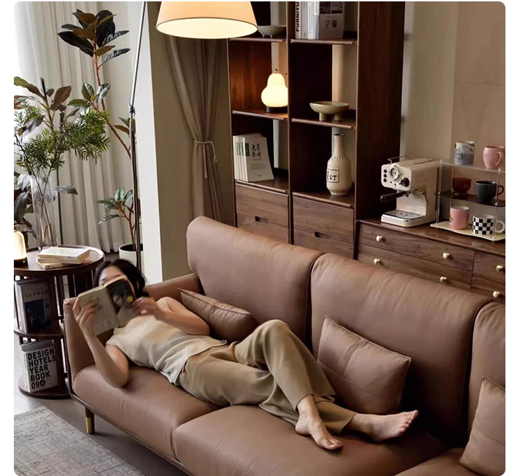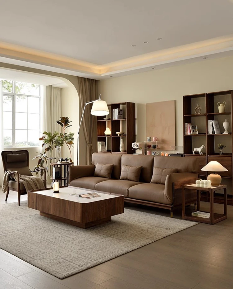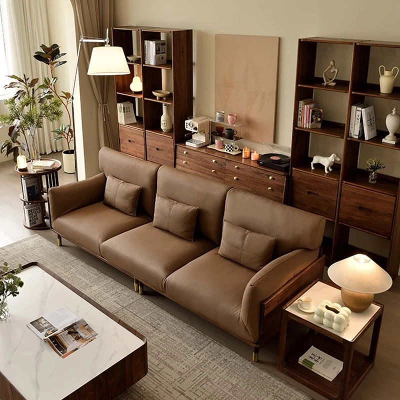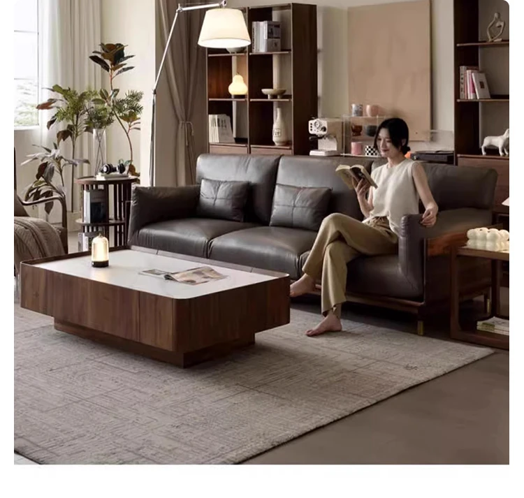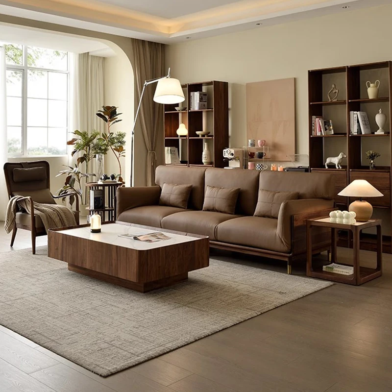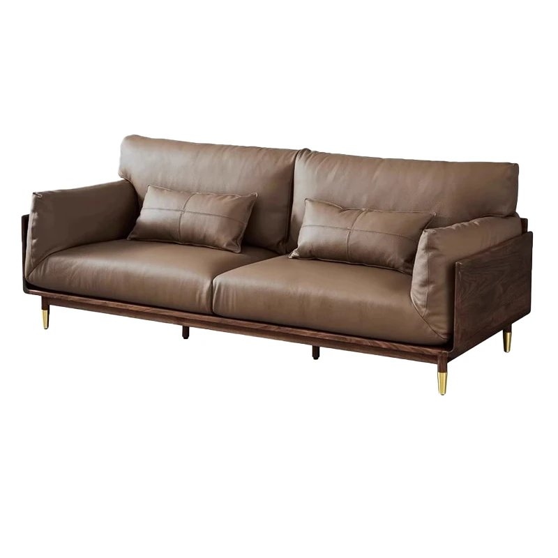 2025 New Chinese Style Solid Wood Sofa - High-End Straight-Line Single and Double Seat Sofa for Living Room, Zen Minimalist Design in Walnut Wood