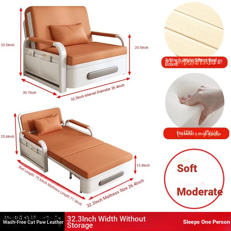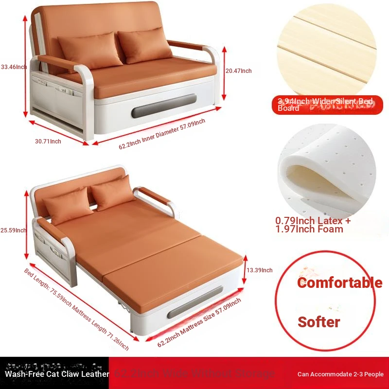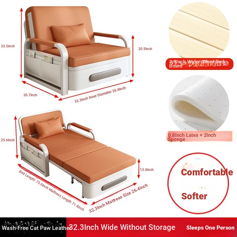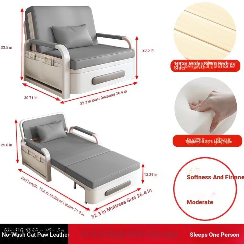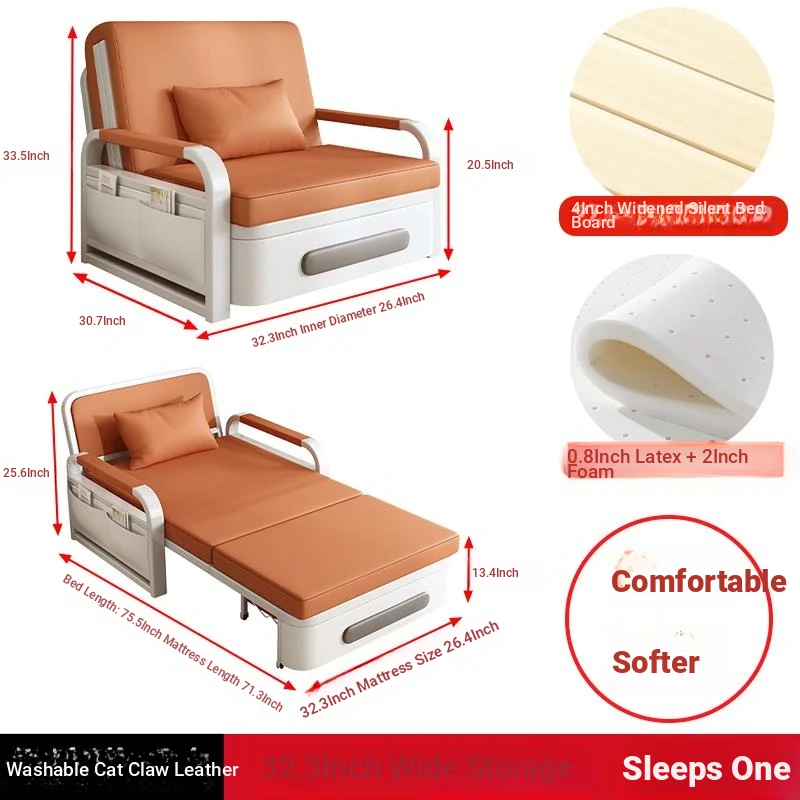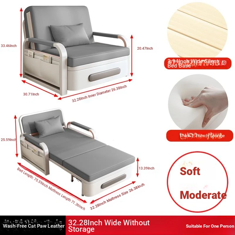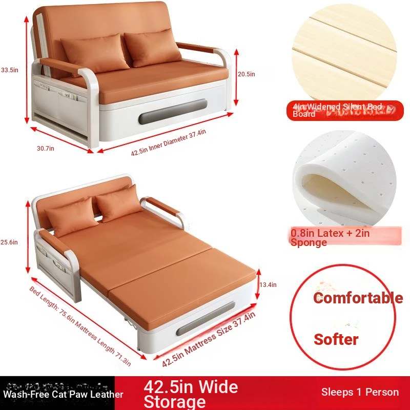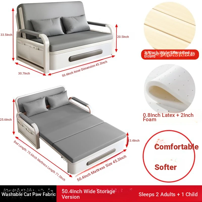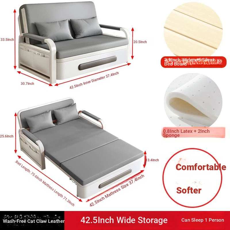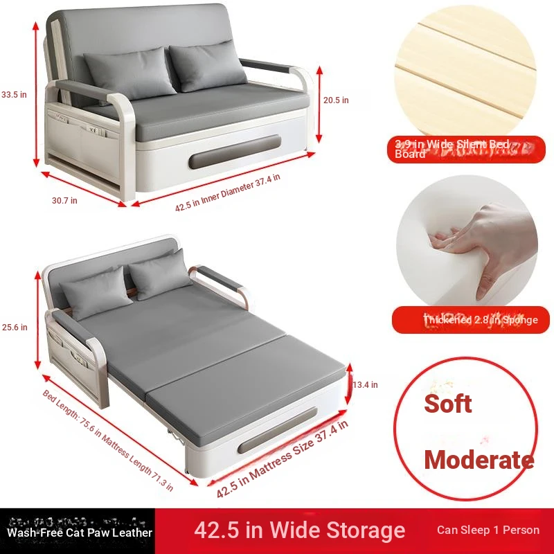 2025 New Multi-Functional Folding Sofa Bed for Small Apartments - Space-Saving Pull-Out Design for Single or Double Use in Living Rooms