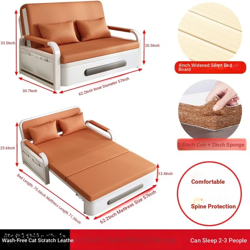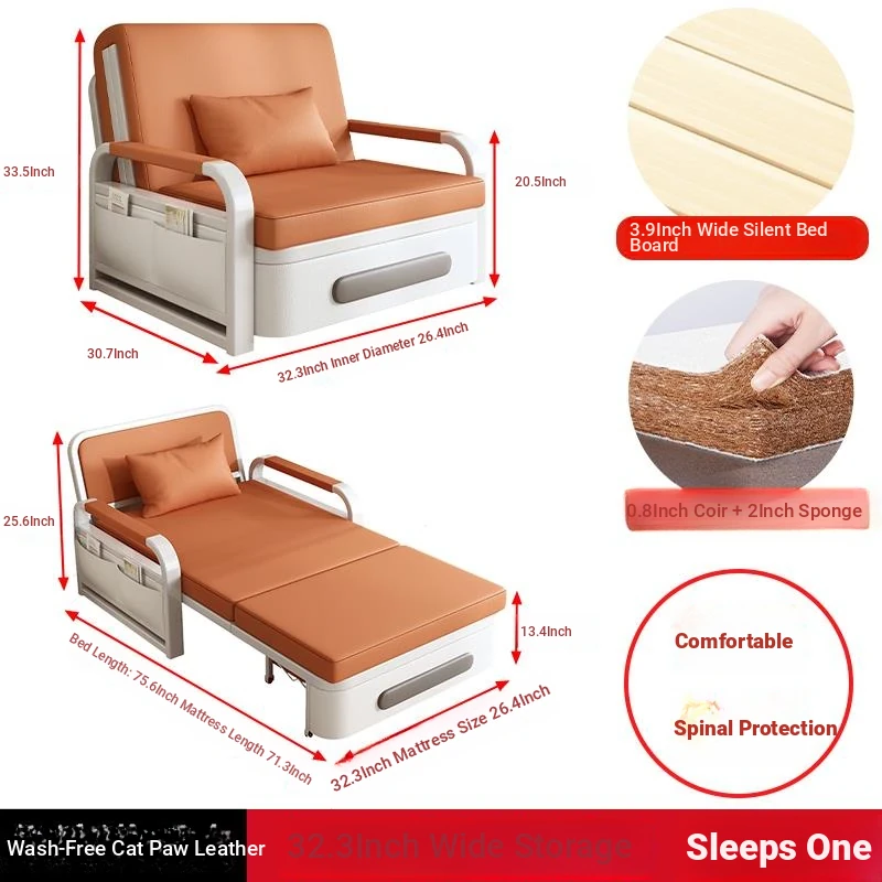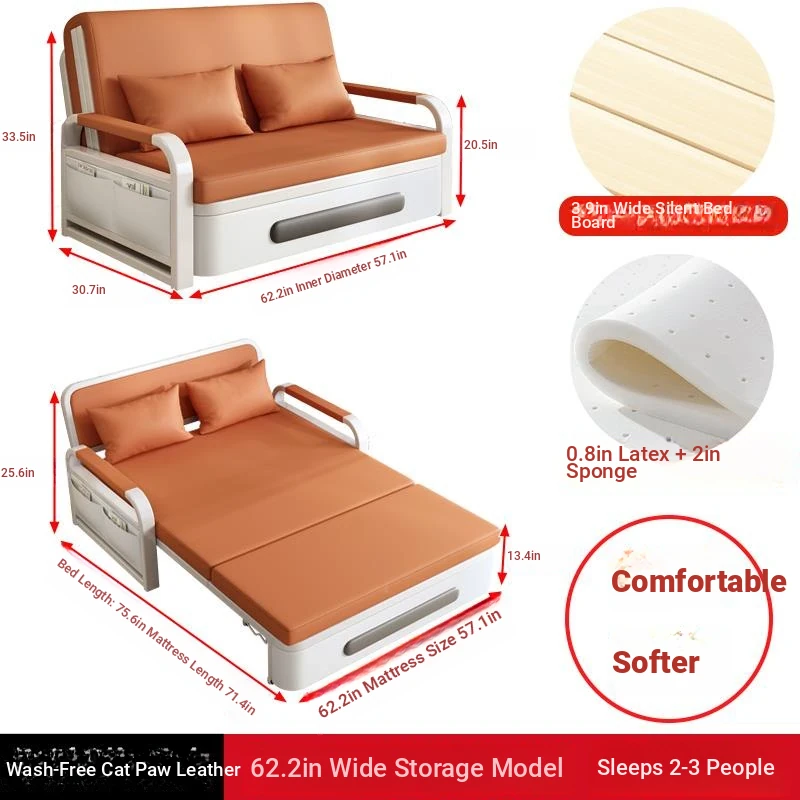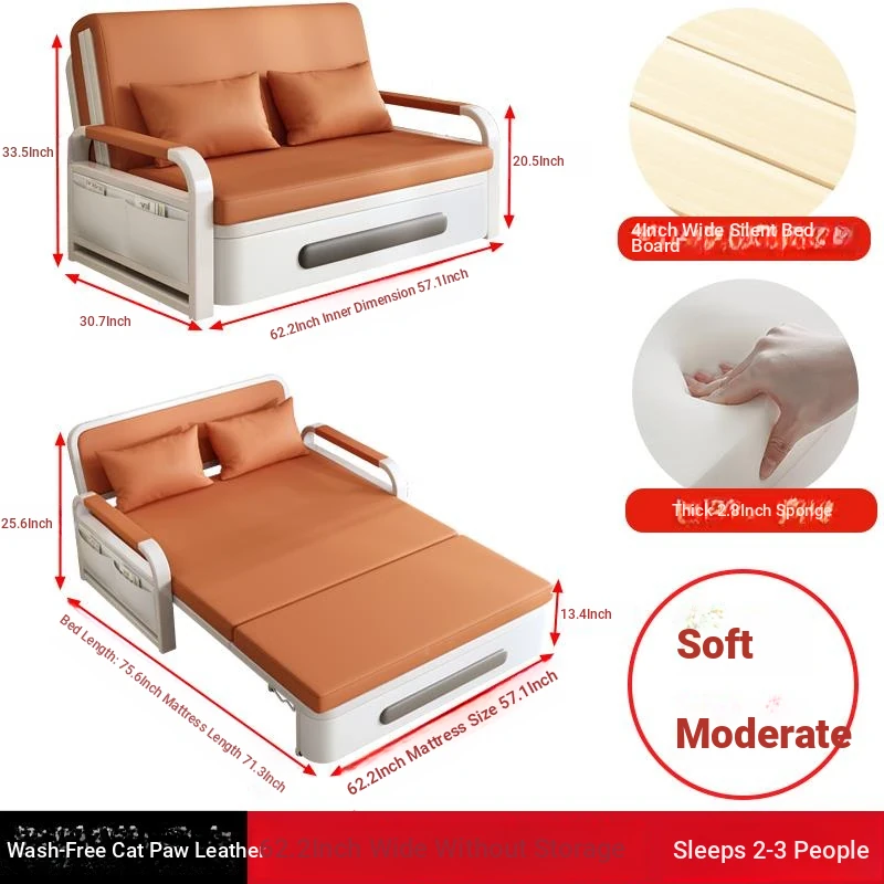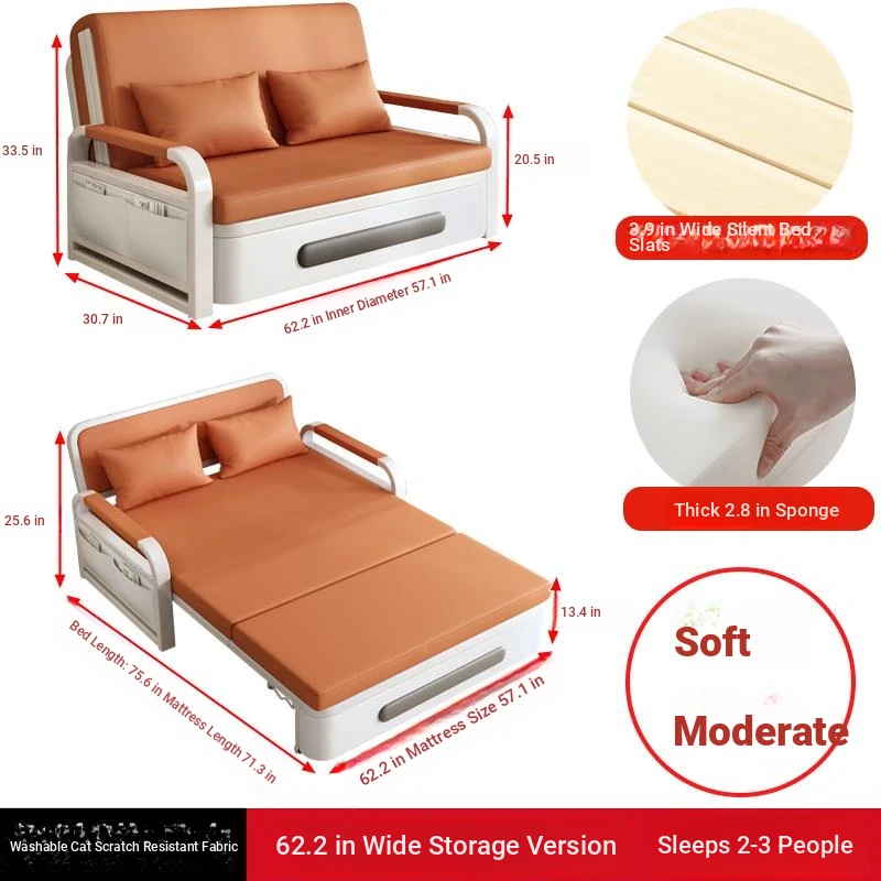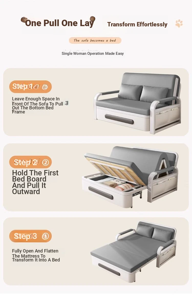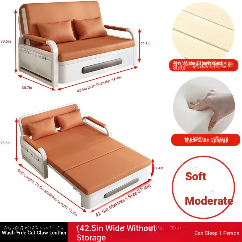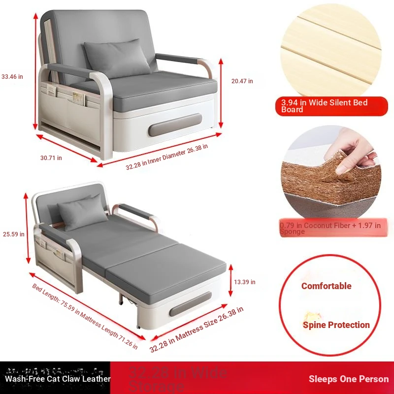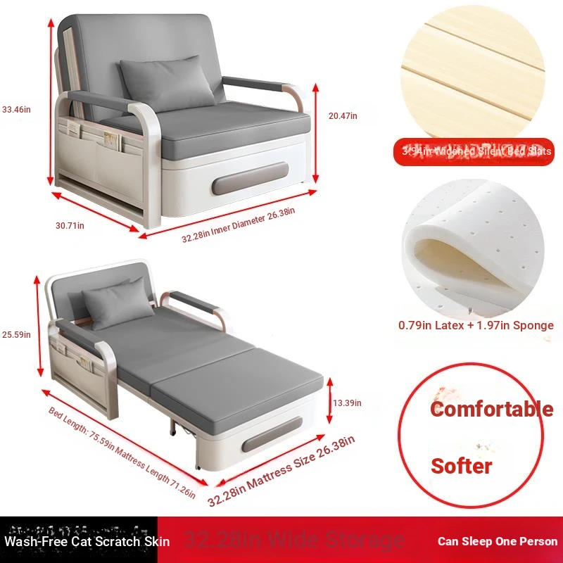 2025 New Multi-Functional Folding Sofa Bed for Small Apartments - Space-Saving Pull-Out Design for Single or Double Use in Living Rooms