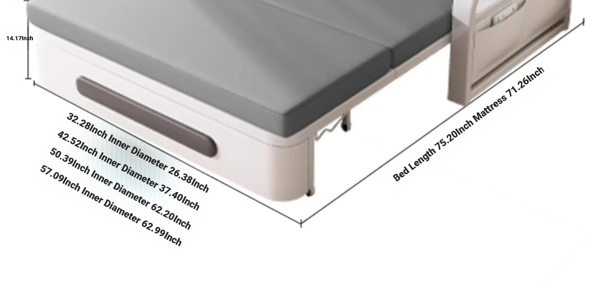 [50.39 in storage] 1.97in sponge +0.79in latex (cat scratch skin + Gray)