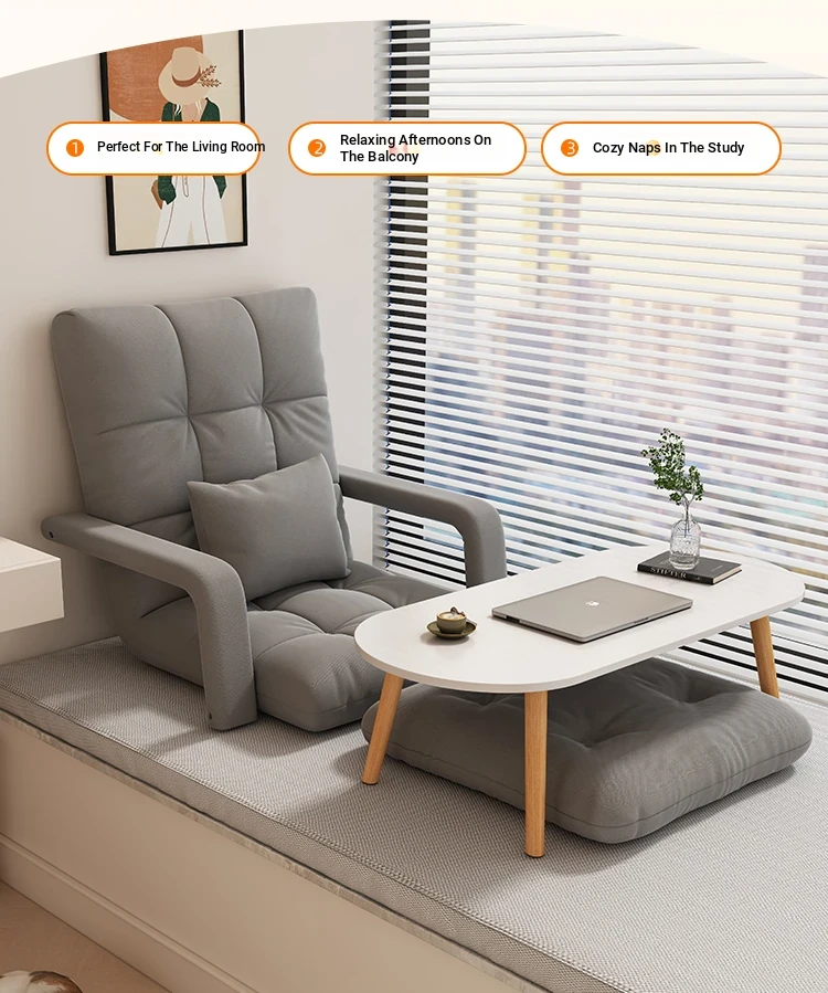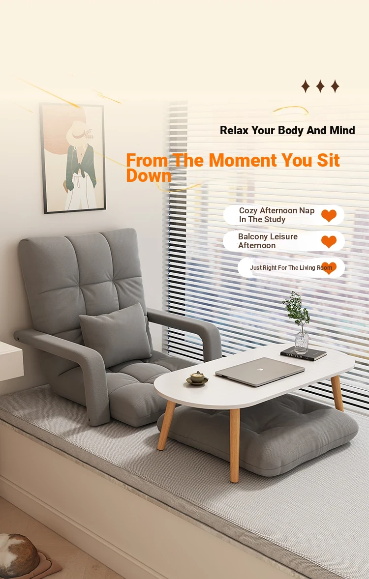 Adjustable Backrest Chair with Armrests - Perfect for Lounging and Napping, Ideal Tatami Floor Cushion, Single Seat for Bay Windows and Cozy Living Spaces, Comfortable Lazy Sofa Chair for Relaxation.