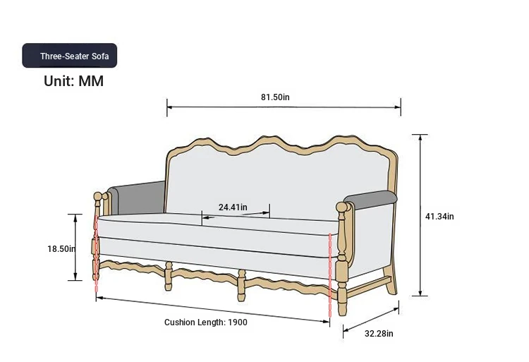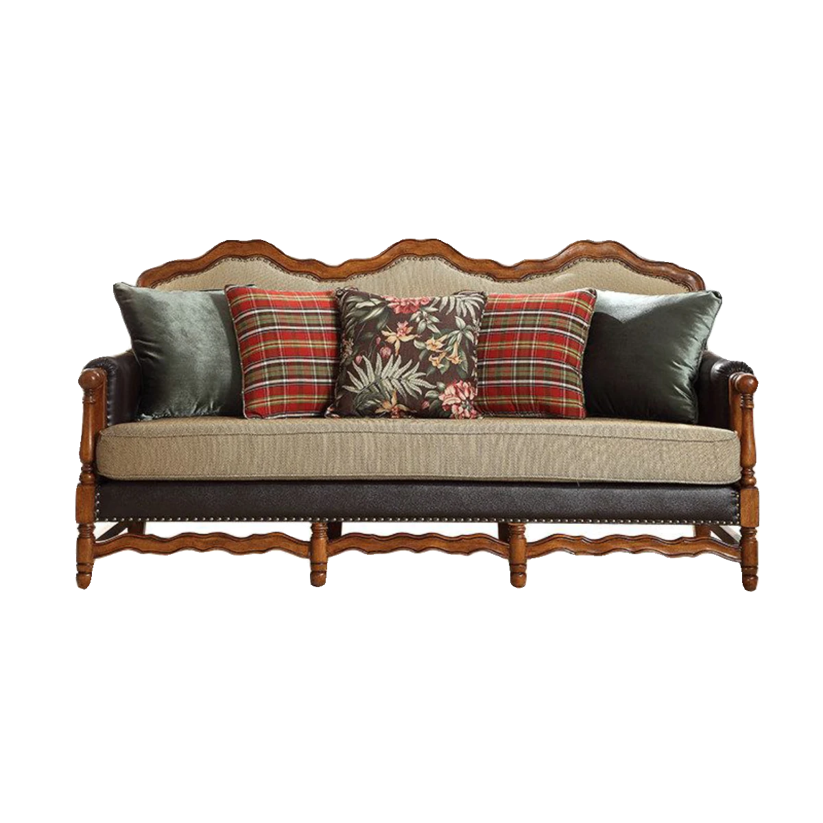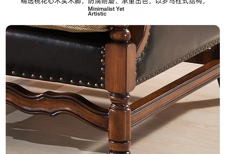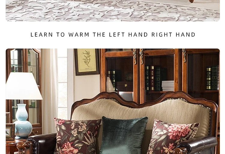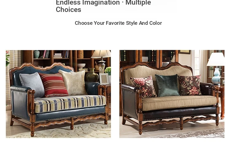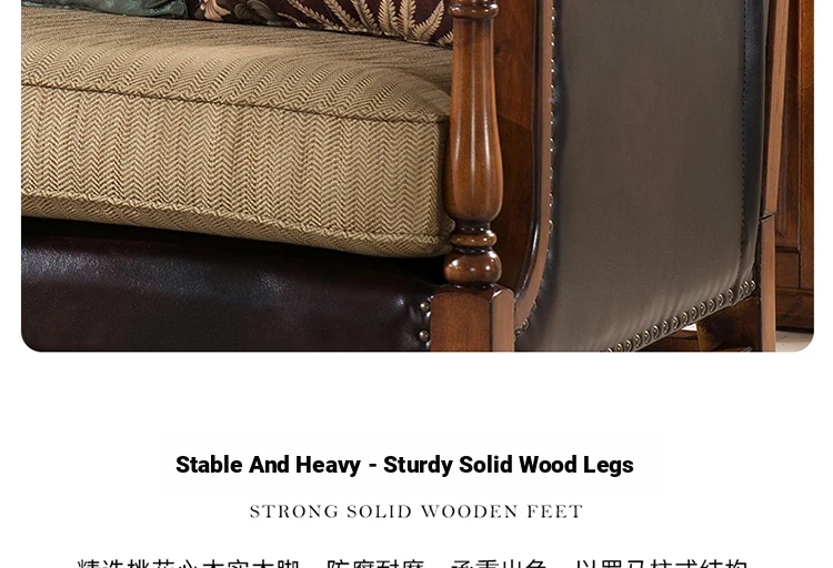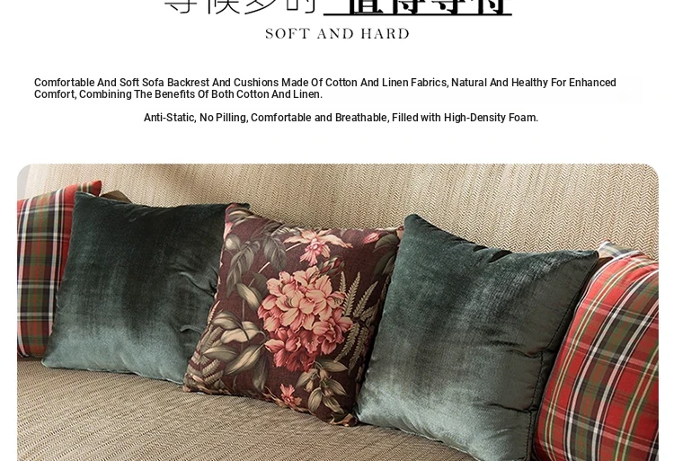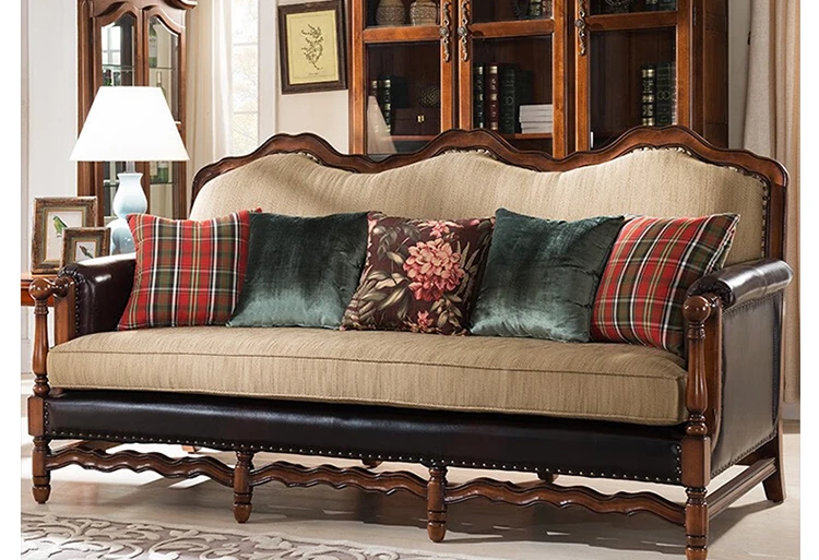 American Country Style Solid Wood Fabric Sofa Set - Modern European Light Luxury for Small Spaces, Ideal for Living Rooms, 3-Seater Sofa with Simplistic Beauty