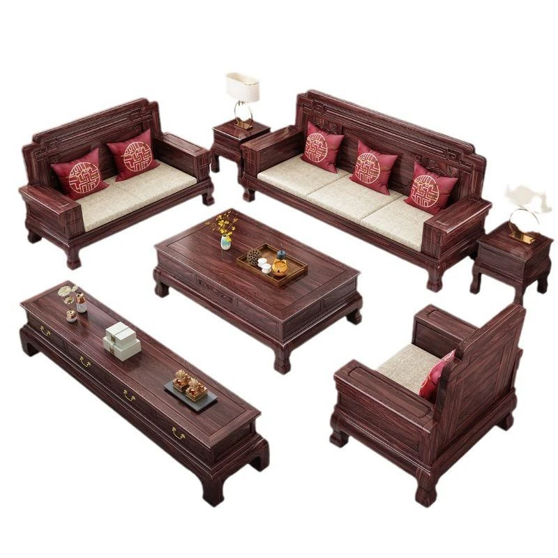 Aussie Style Solid Wood New Chinese Minimalist Living Room Furniture Set - Elegant High-End Carved Floral Design for Small Apartments