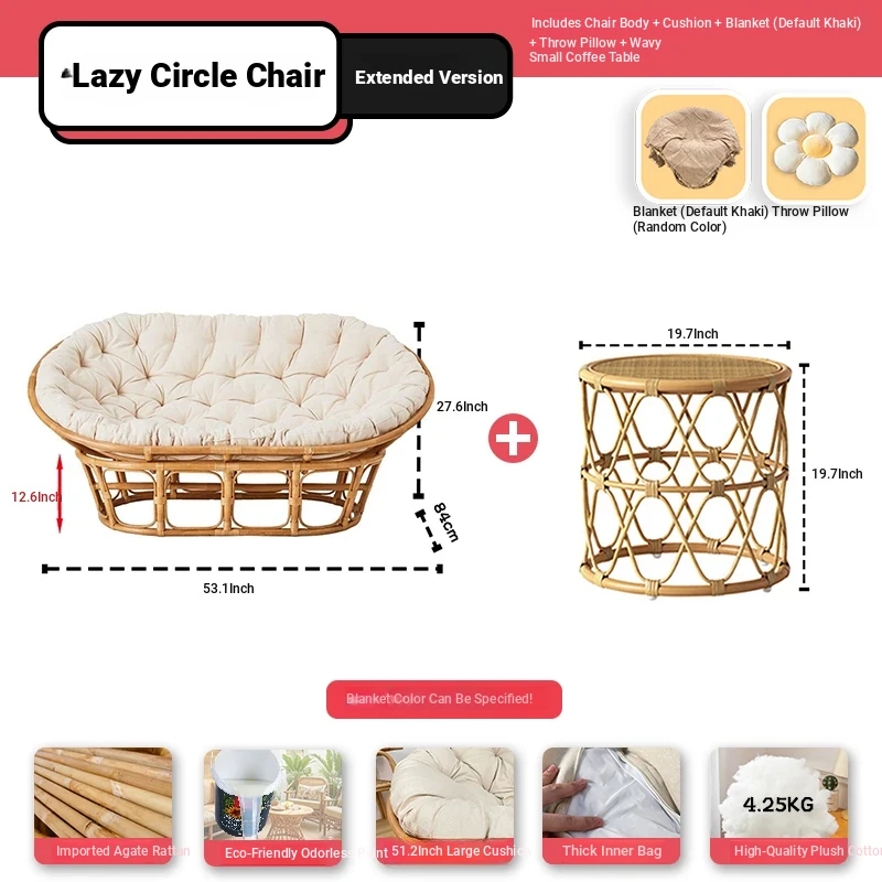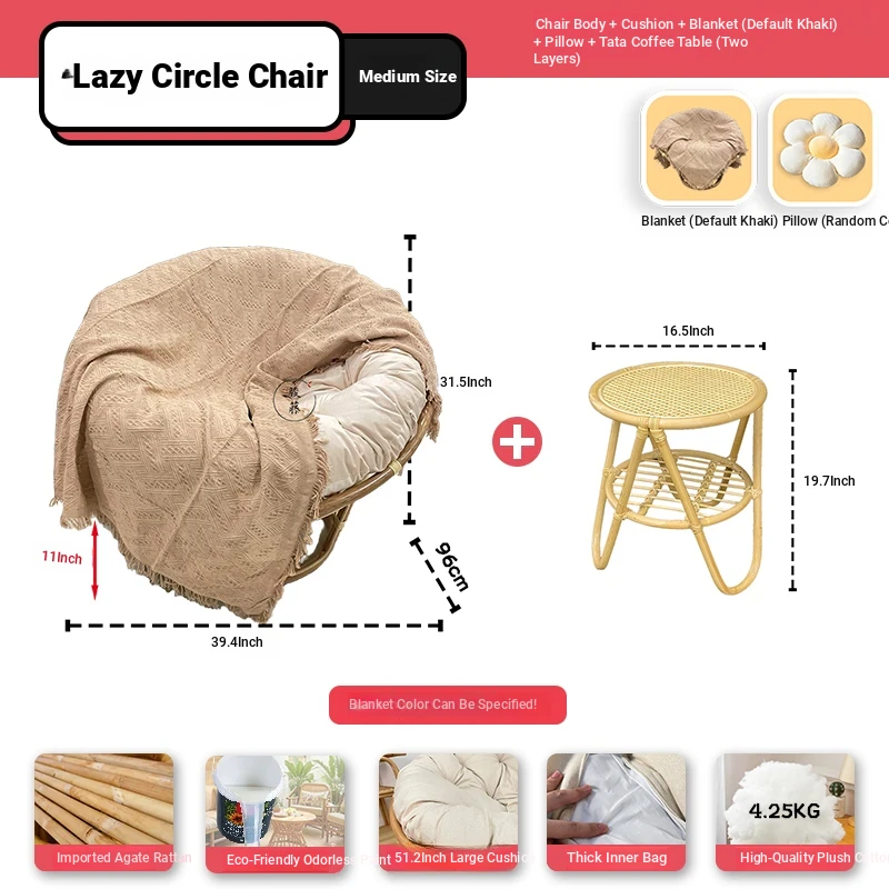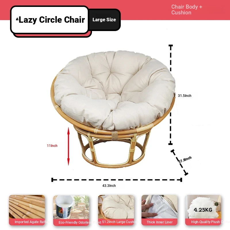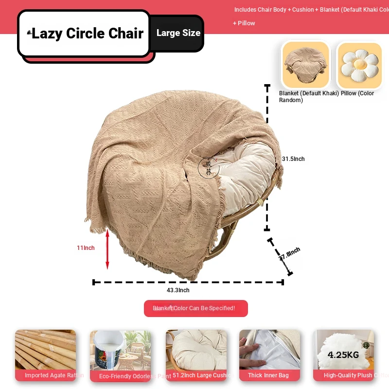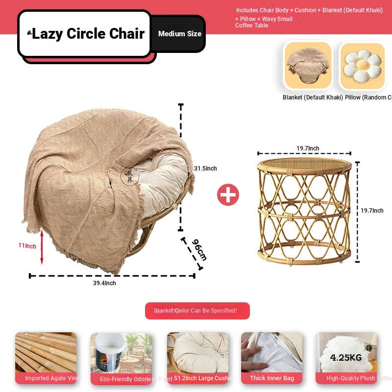 Circular Balcony Lazy Sofa - Versatile Lounge Chair for Relaxation and Napping, Single Seat Wicker Recliner for Living Room, Stylish Rattan Chair with Radar Design