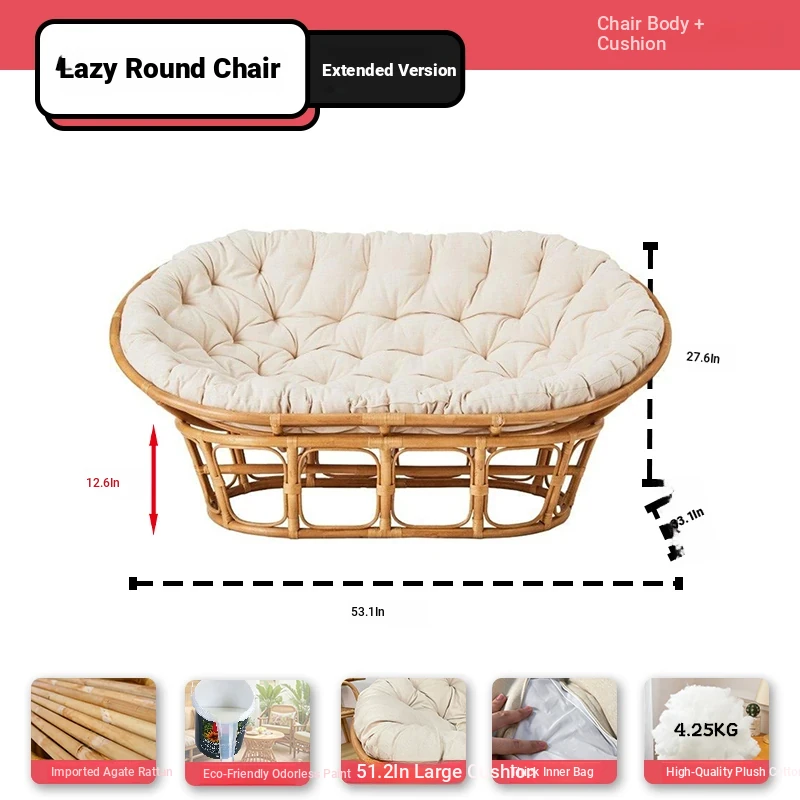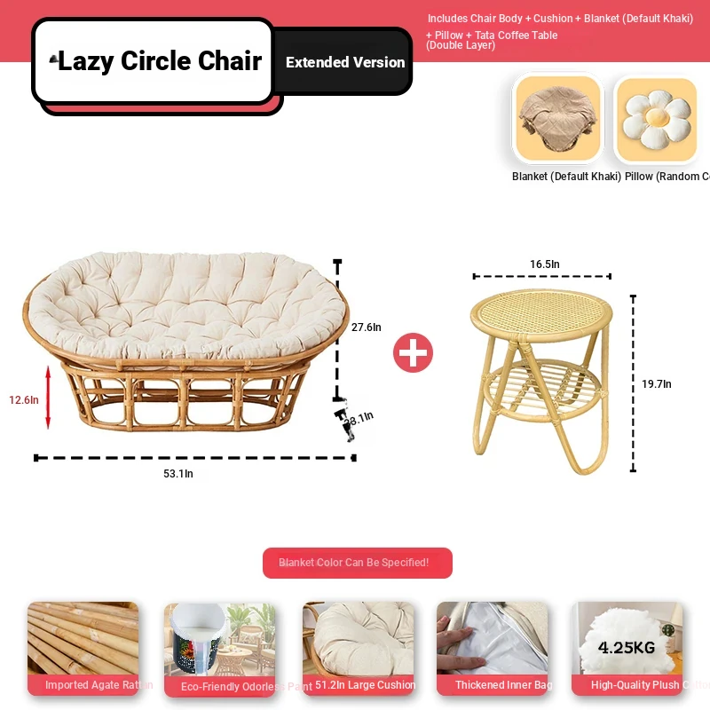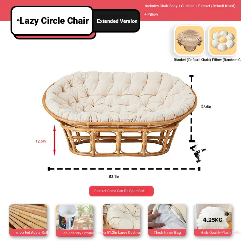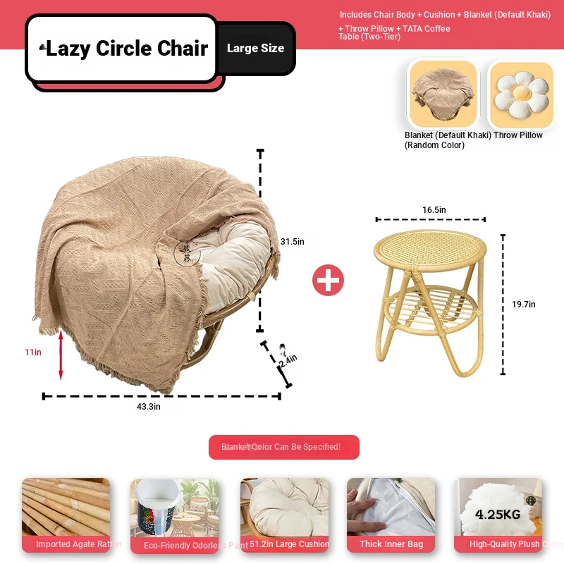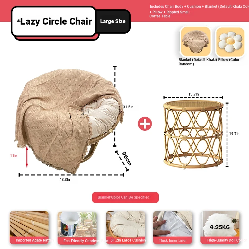 Circular Balcony Lazy Sofa - Versatile Lounge Chair for Relaxation and Napping, Single Seat Wicker Recliner for Living Room, Stylish Rattan Chair with Radar Design