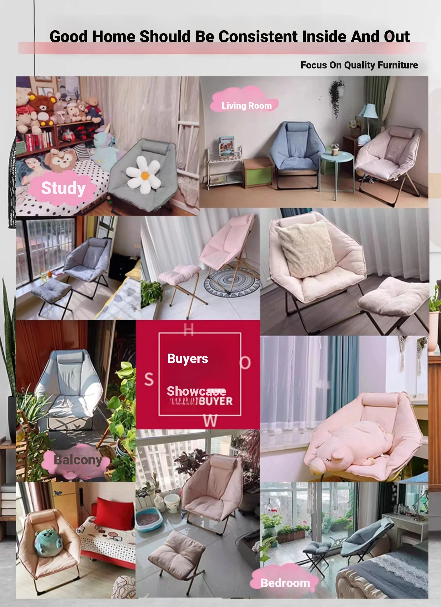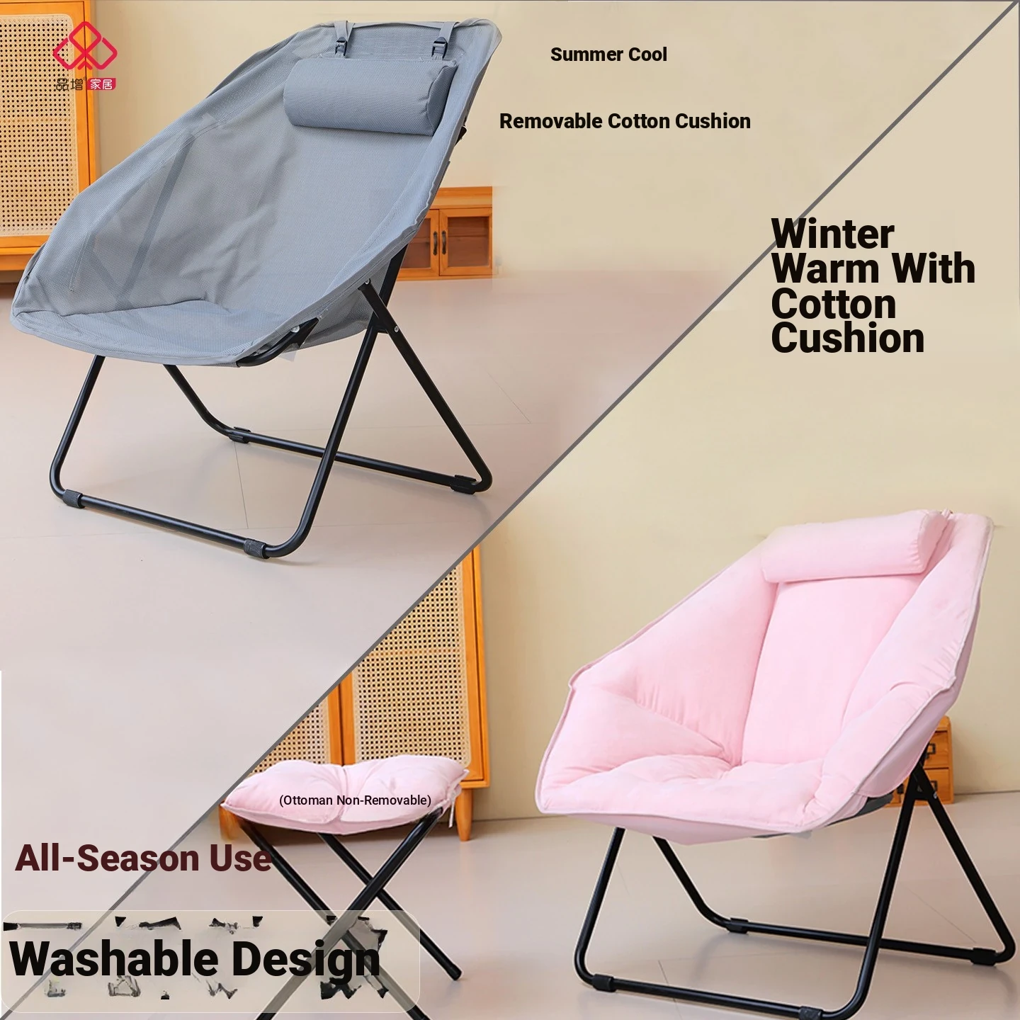 [Upgraded Hexagon Chair Removable and Washable] Cherry Powder/Suede