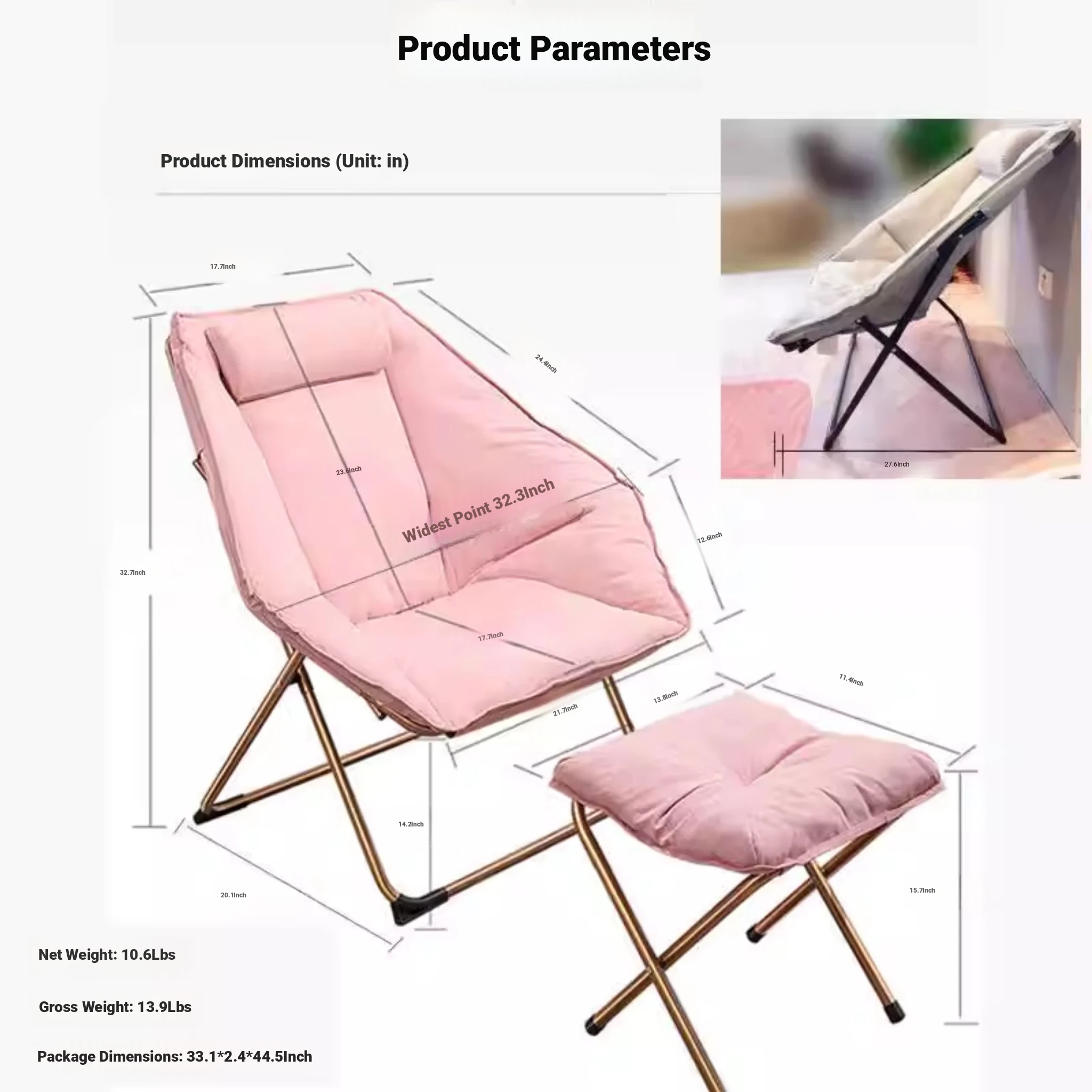 [Upgraded Hexagon Chair Removable and Washable] Cherry Powder/Suede + Ottoman