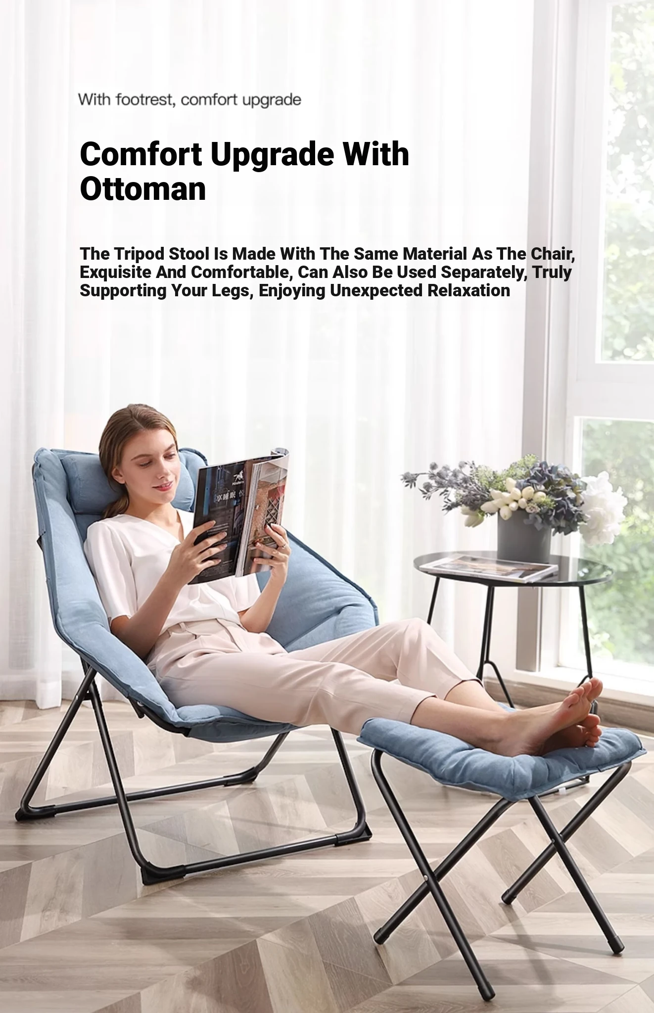 [Hexagonal chair] Sky Blue/Waterproof technology cloth + Ottoman/Suede