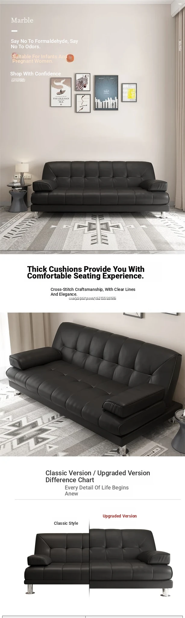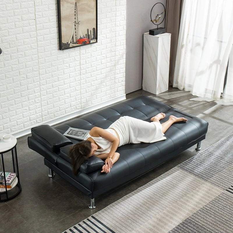 Compact Office Nap Sofa Bed - Stylish Faux Leather Three-Seater, Foldable and Multi-Functional, Perfect for Small Spaces
