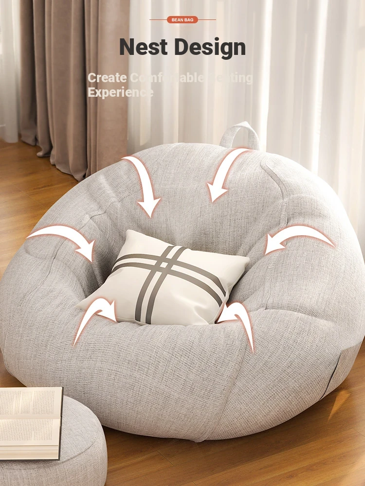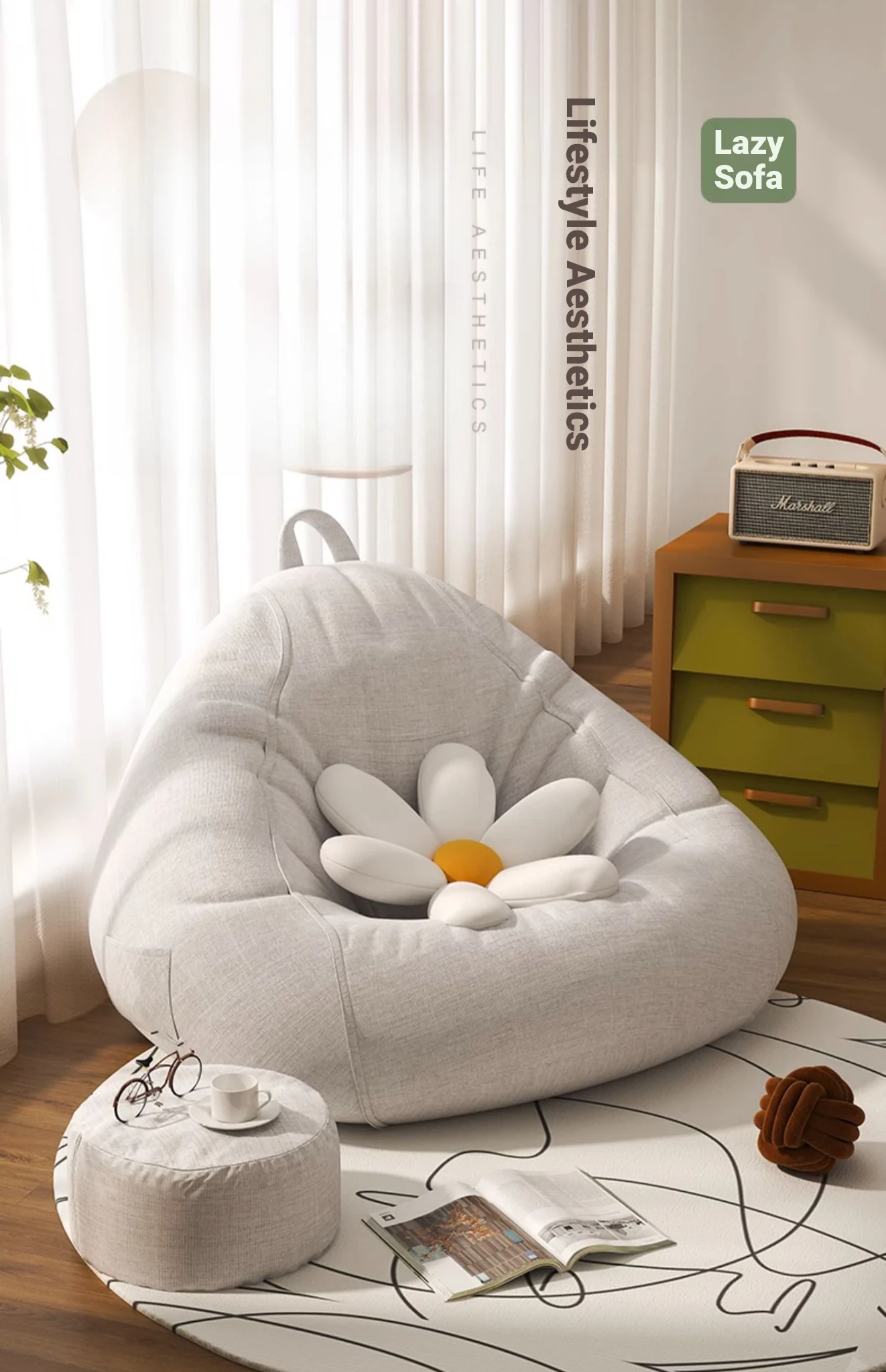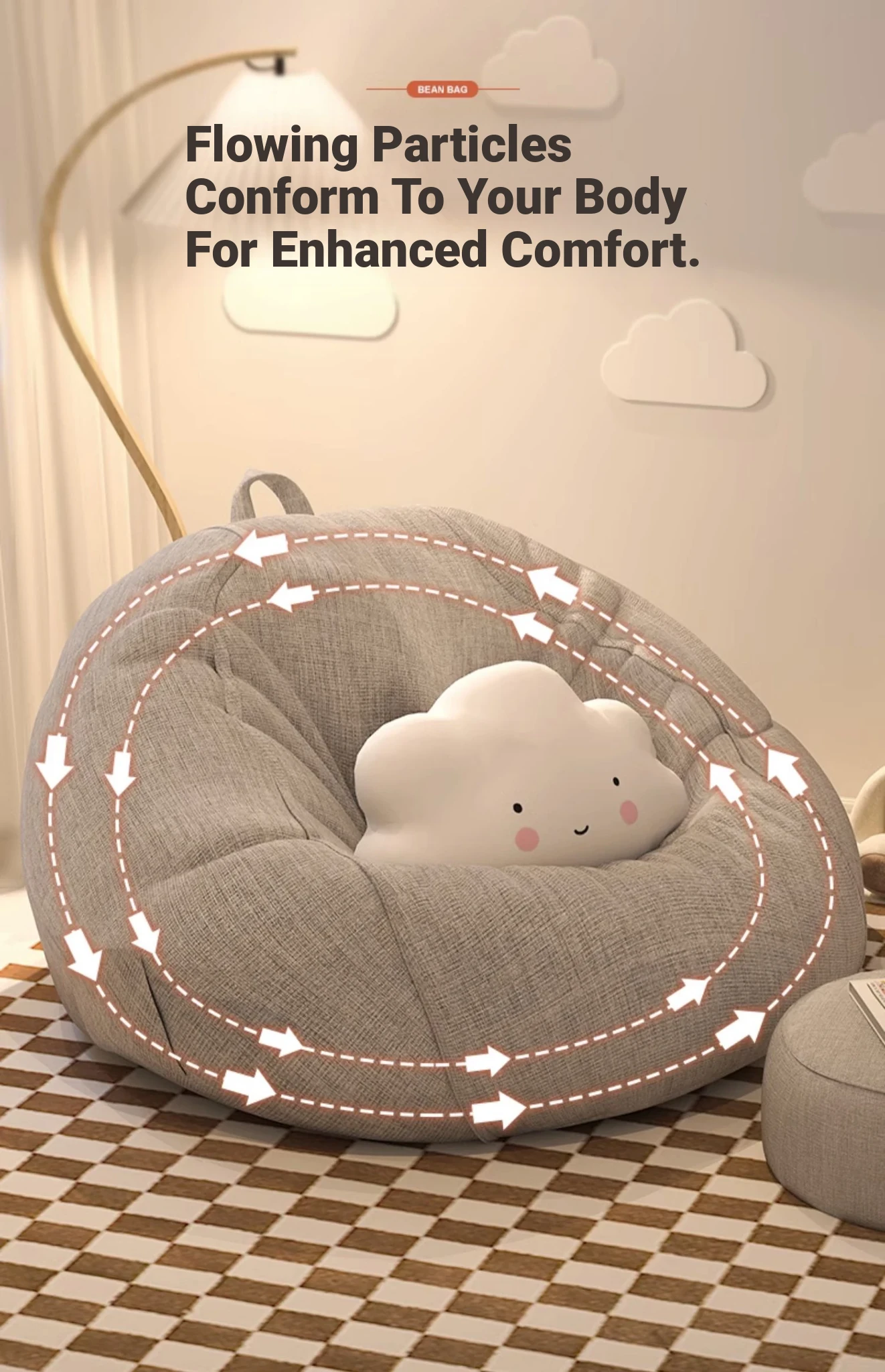 Cozy Bean Bag Chair for One – Creamy Lounge Sofa for Bedroom and Balcony, Perfect for Relaxing, Reading, or Napping – Ideal Human and Pet Nest!