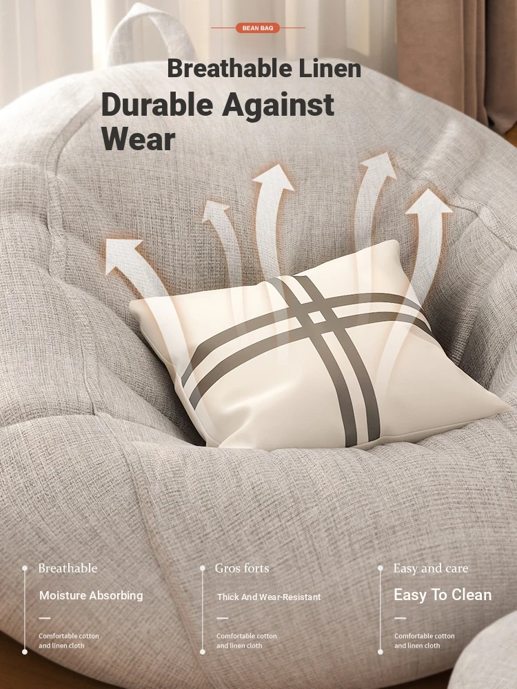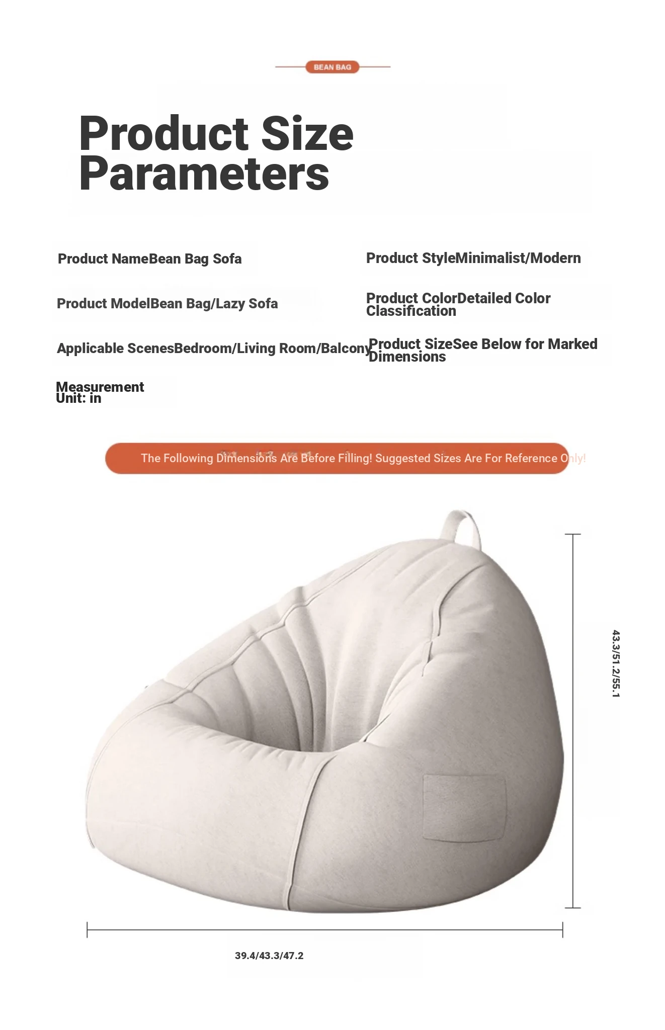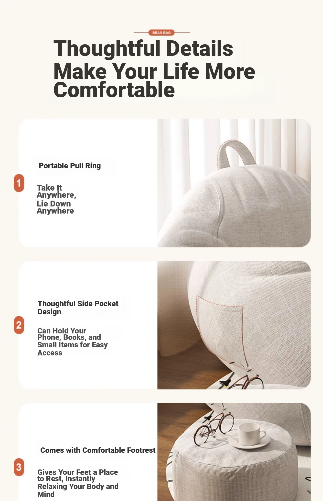 Cozy Bean Bag Chair for One – Creamy Lounge Sofa for Bedroom and Balcony, Perfect for Relaxing, Reading, or Napping – Ideal Human and Pet Nest!