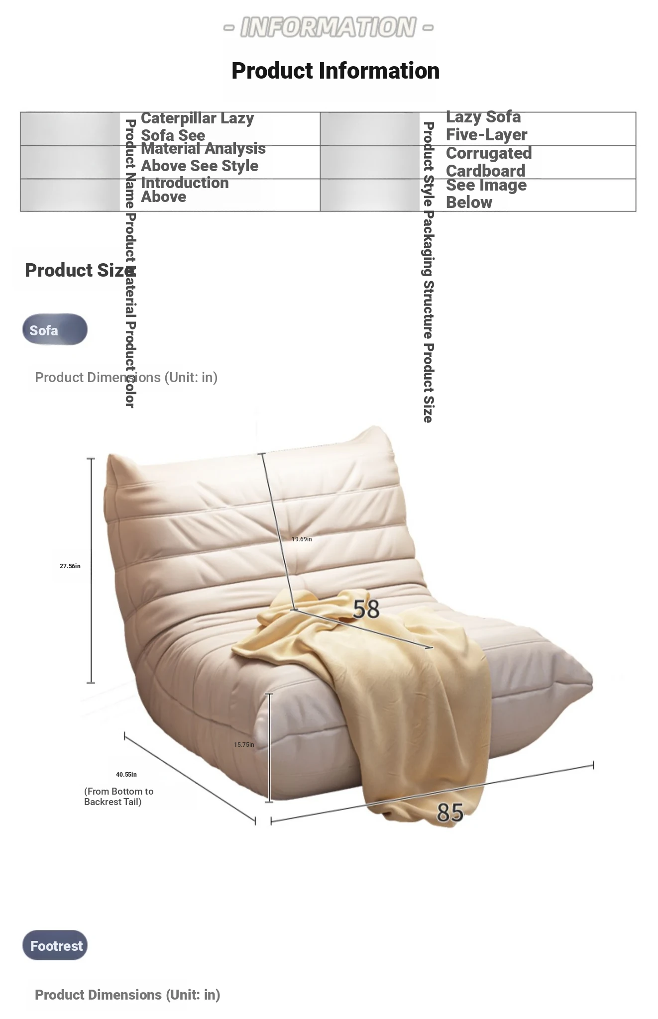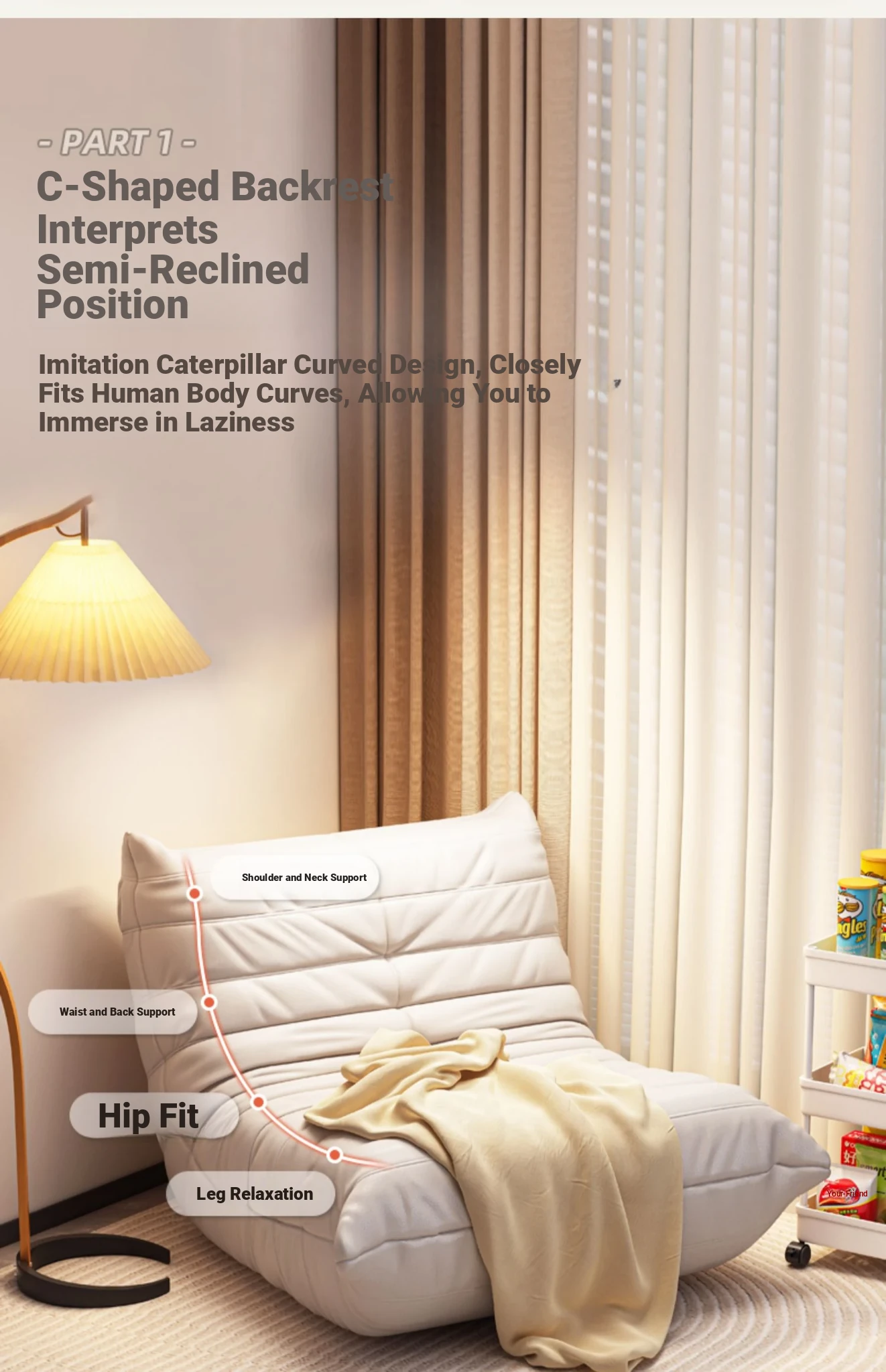 Cozy Caterpillar Sofa Chair - Perfect for Balconies and Bedrooms, Ideal for Relaxation and Long Sitting, Tatami Lazy Sofa, Versatile Design for Sitting and Sleeping