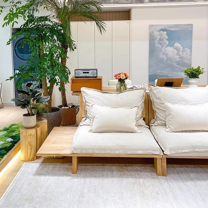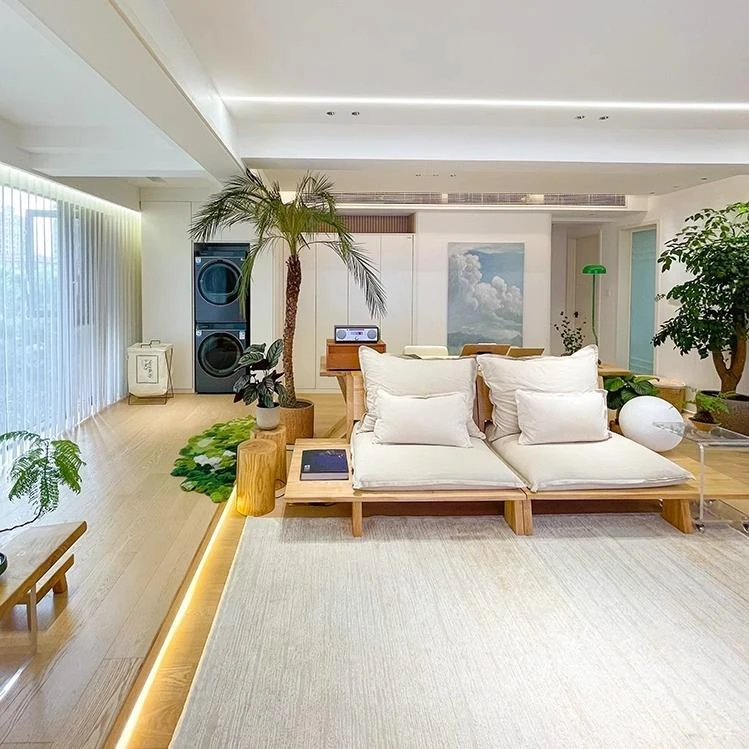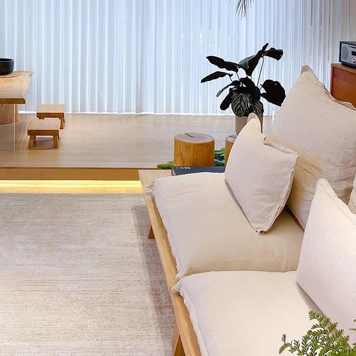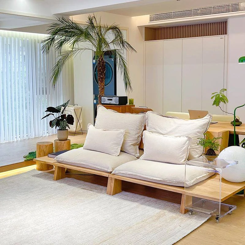 Creamy Japanese Style Solid Wood Sofa - Ash Wood Fabric Couch, Low Tatami Sofa, Luxurious Down-Filled Seating for Ultimate Comfort
