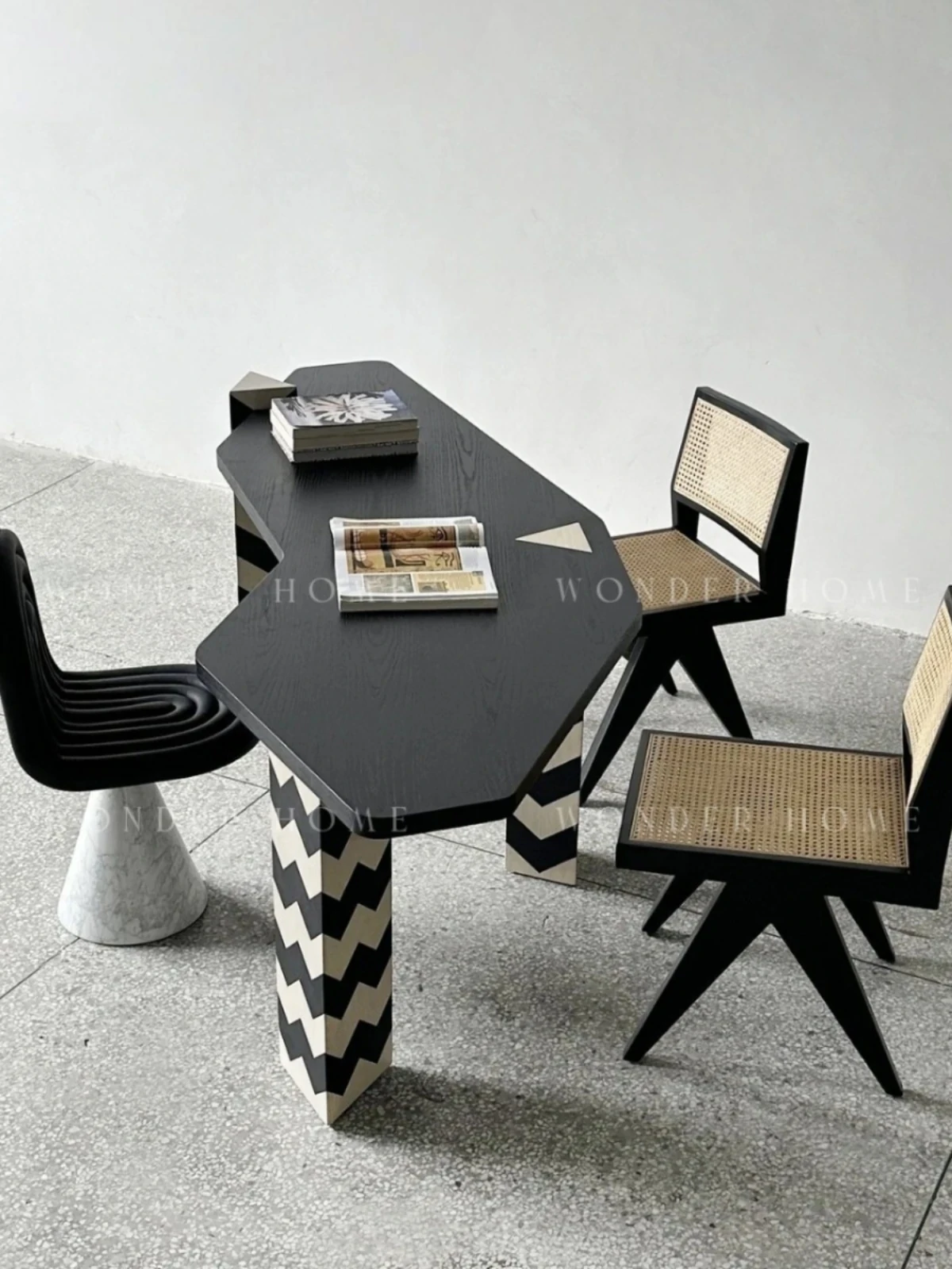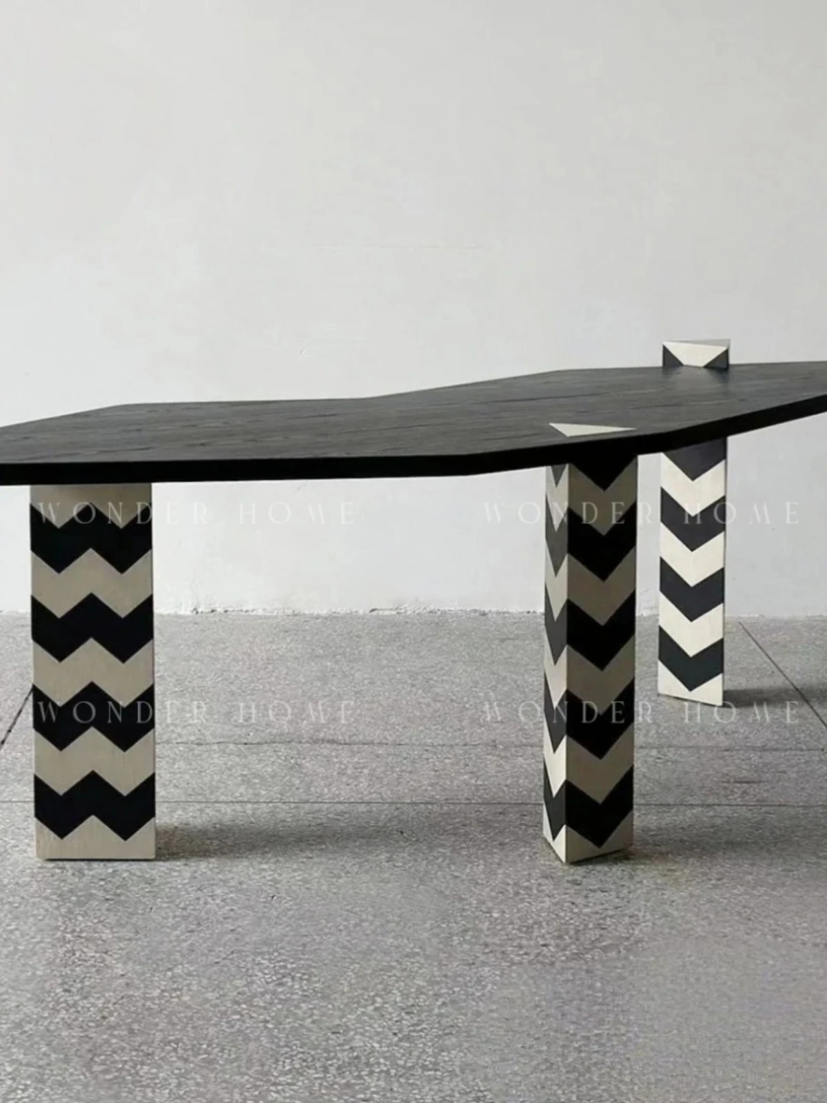 Designer Creative Zebra Stripe Solid Wood Office Desk - Modern Minimalist Wabi-Sabi Style Irregular Shaped Home Study Table