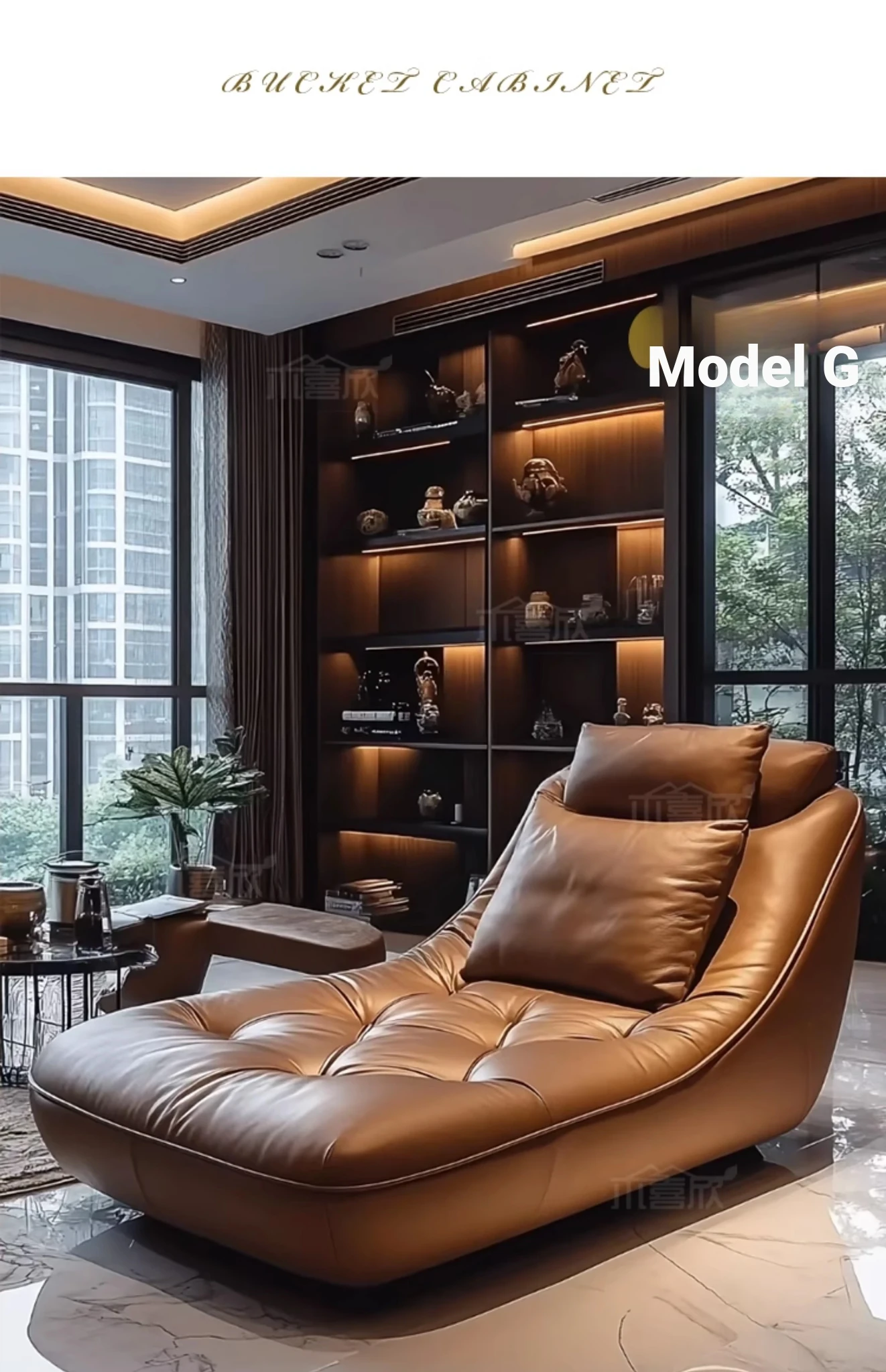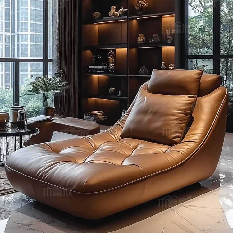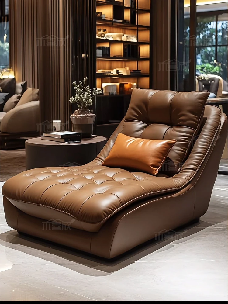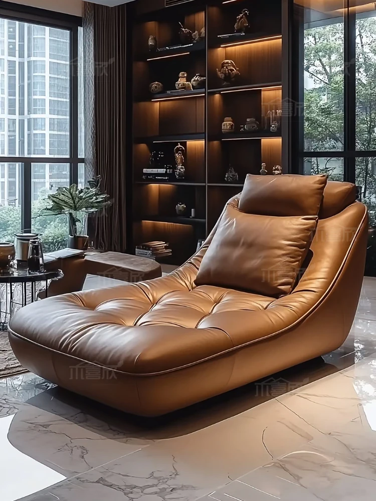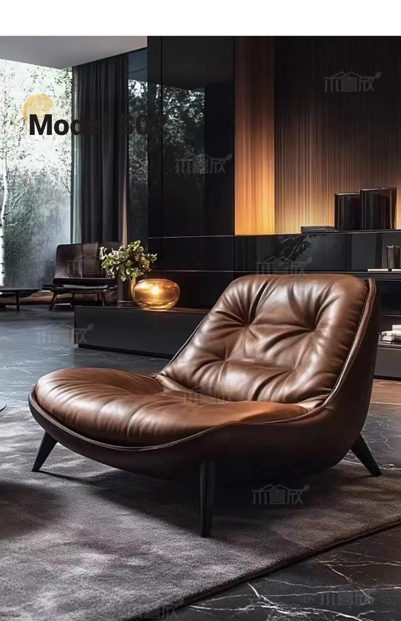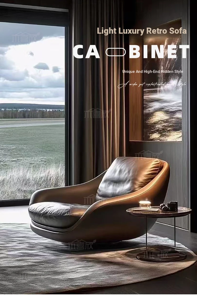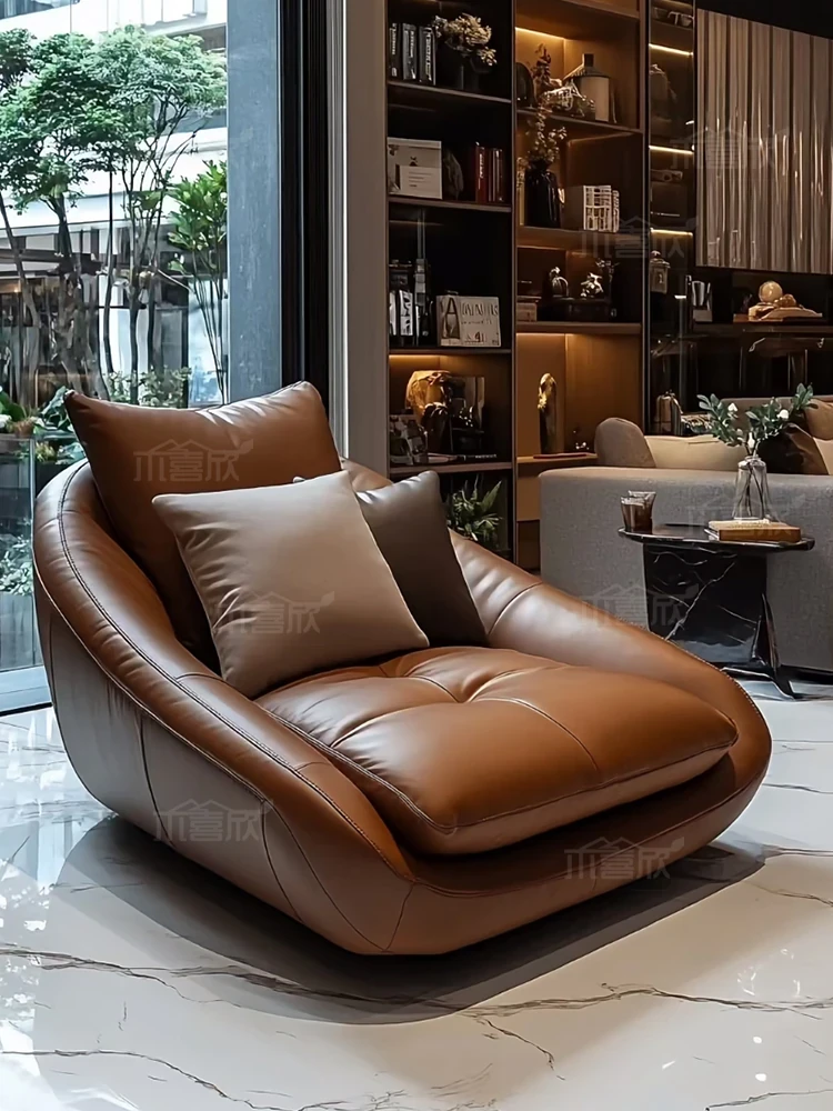 Designer Genuine Leather Eggshell Lounge Chair - Relaxing Cocoon for Ultimate Comfort, Perfect for Pets and Lounging. Single Seat Chaise Lounge with Ottoman - Ideal for Modern Living Spaces.