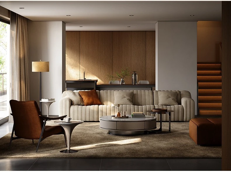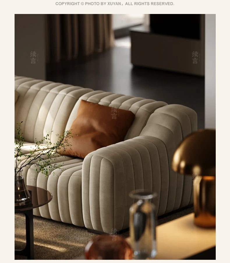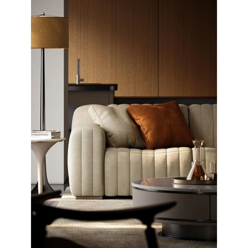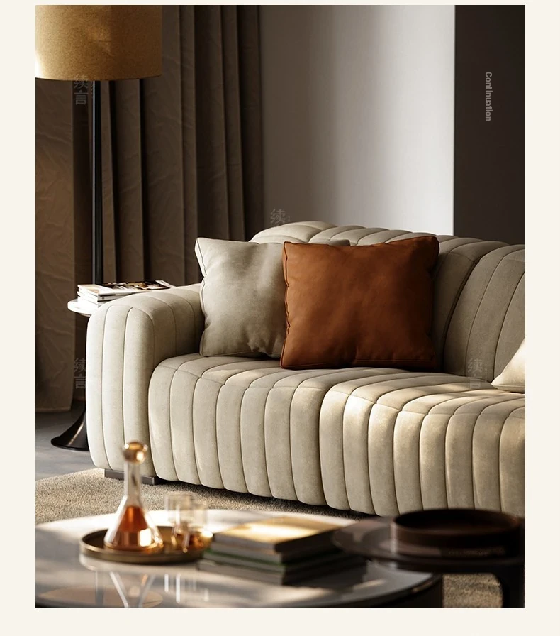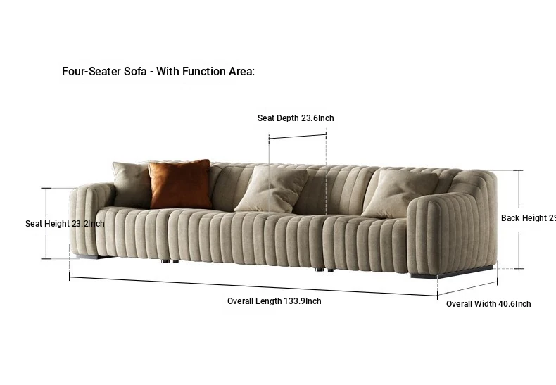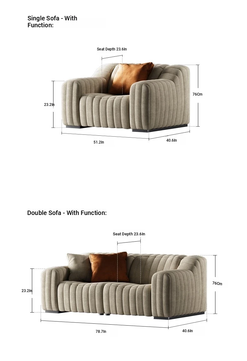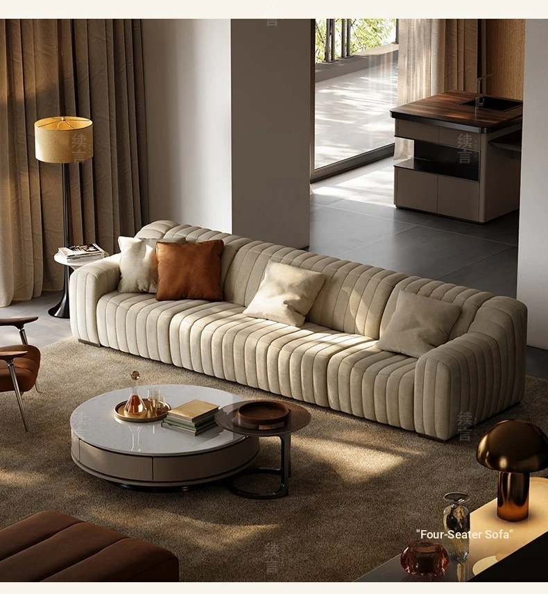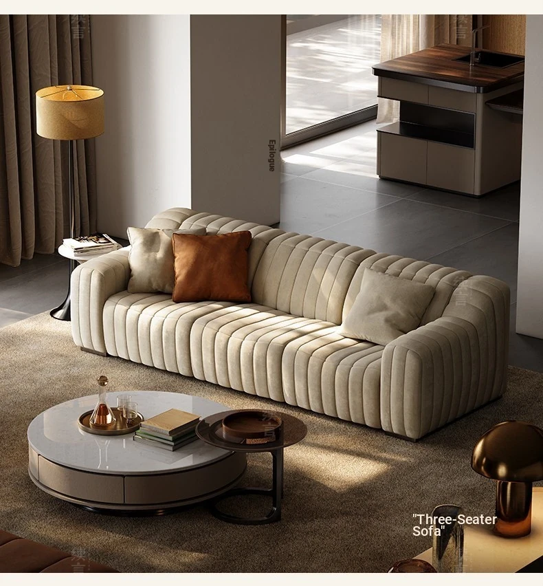 Designer Italian Minimalist Sofa for Spacious Living Rooms - Stylish and Comfortable Fabric Sofa for 3-4 People with Electric Reclining Feature