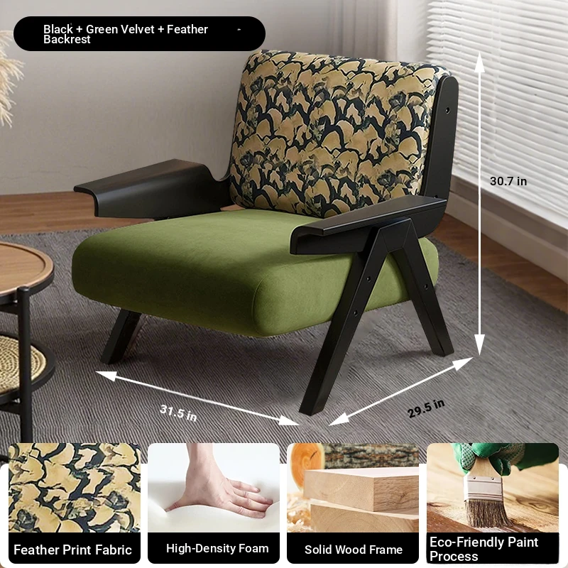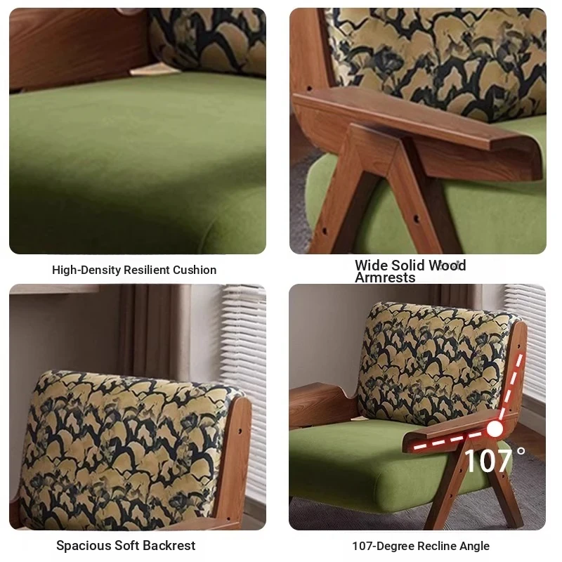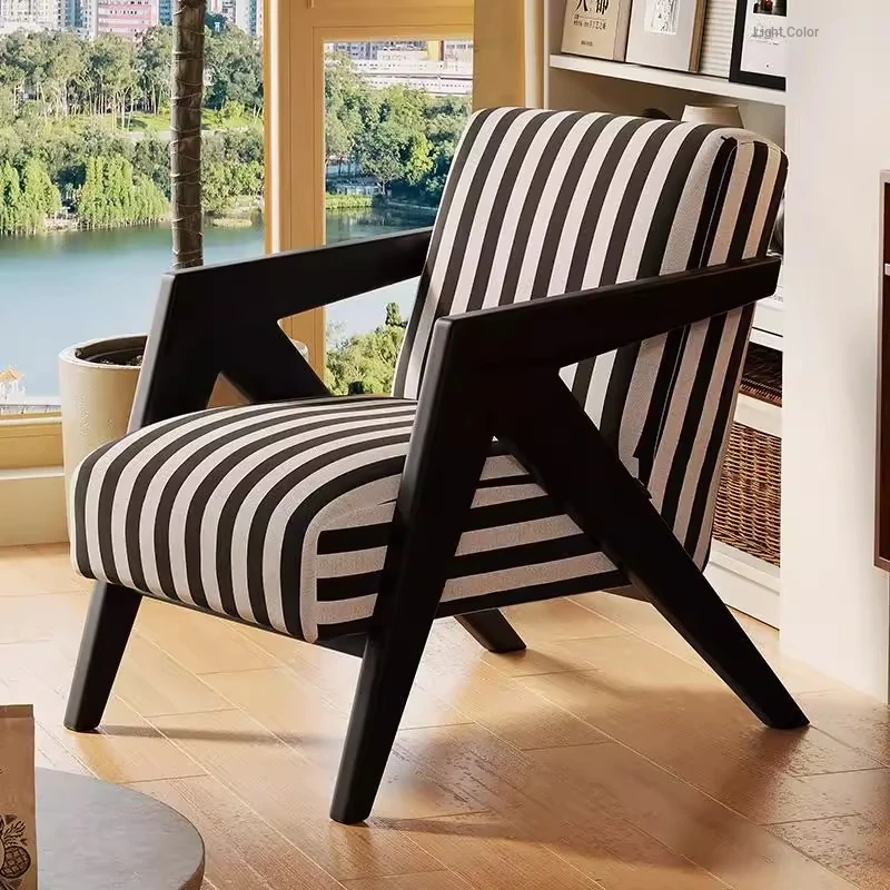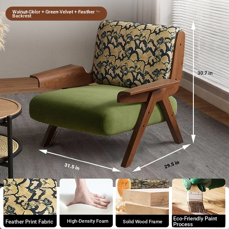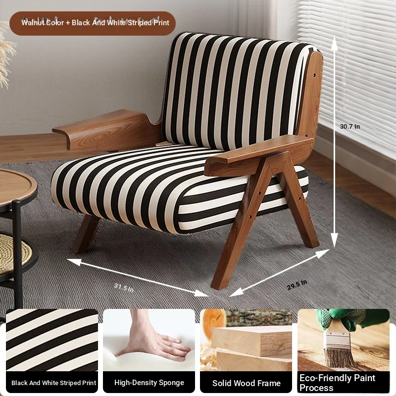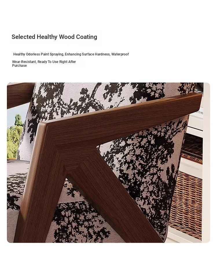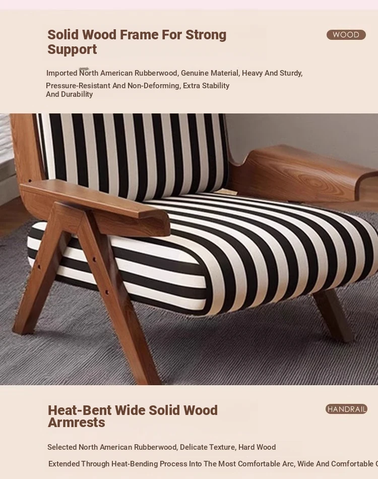 Designer Vintage French-Style Solid Wood Richard Lounge Chair - Retro Mid-Century Sofa for Living Room and Balcony Relaxation