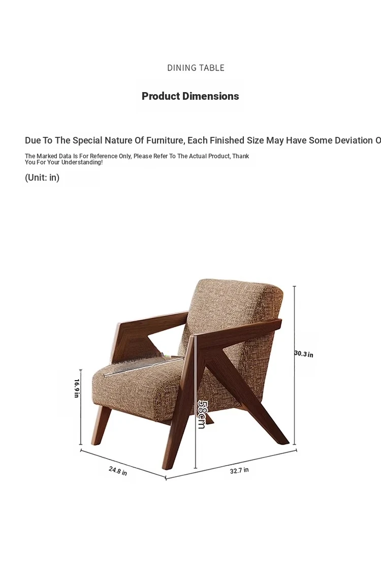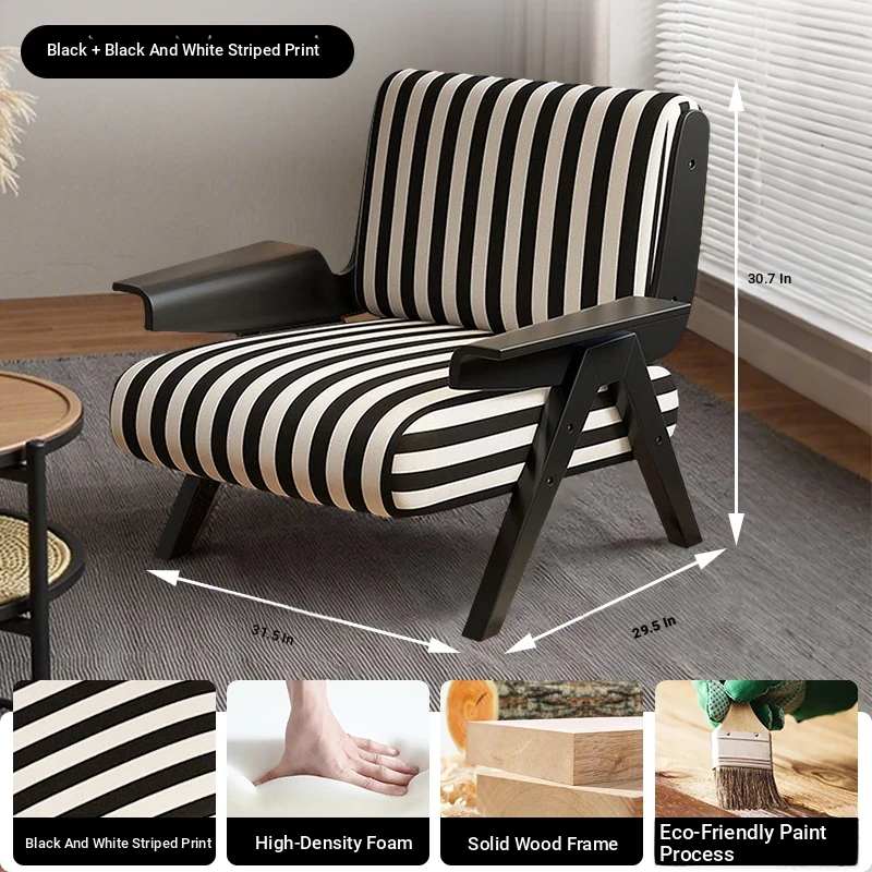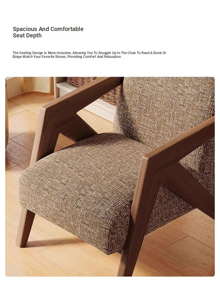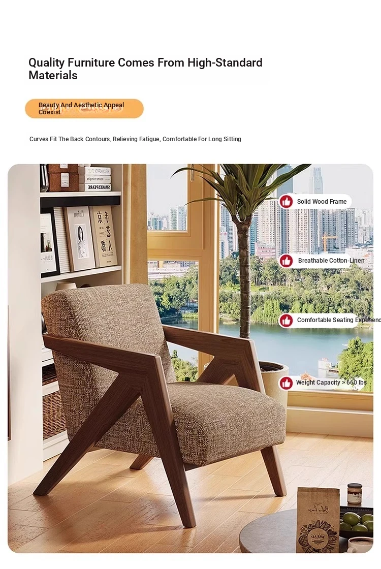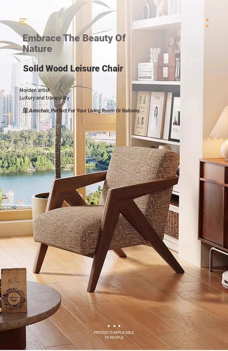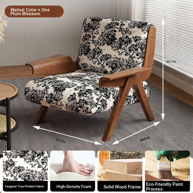 Designer Vintage French-Style Solid Wood Richard Lounge Chair - Retro Mid-Century Sofa for Living Room and Balcony Relaxation