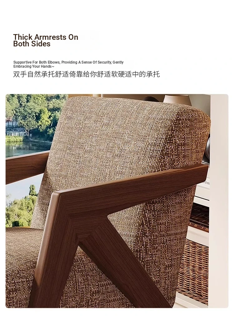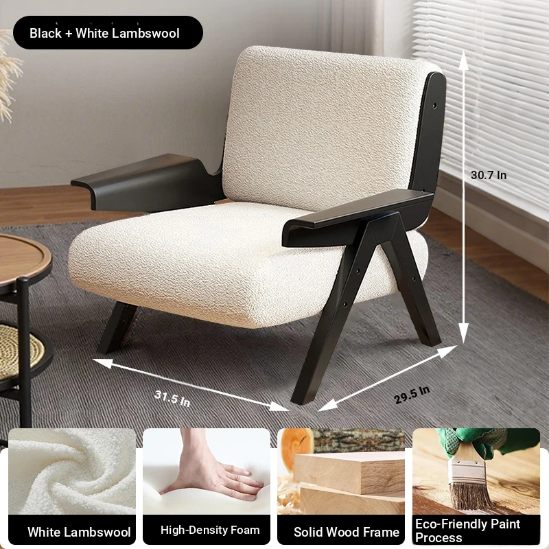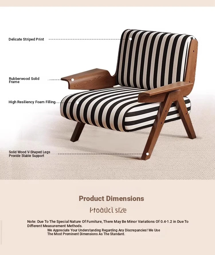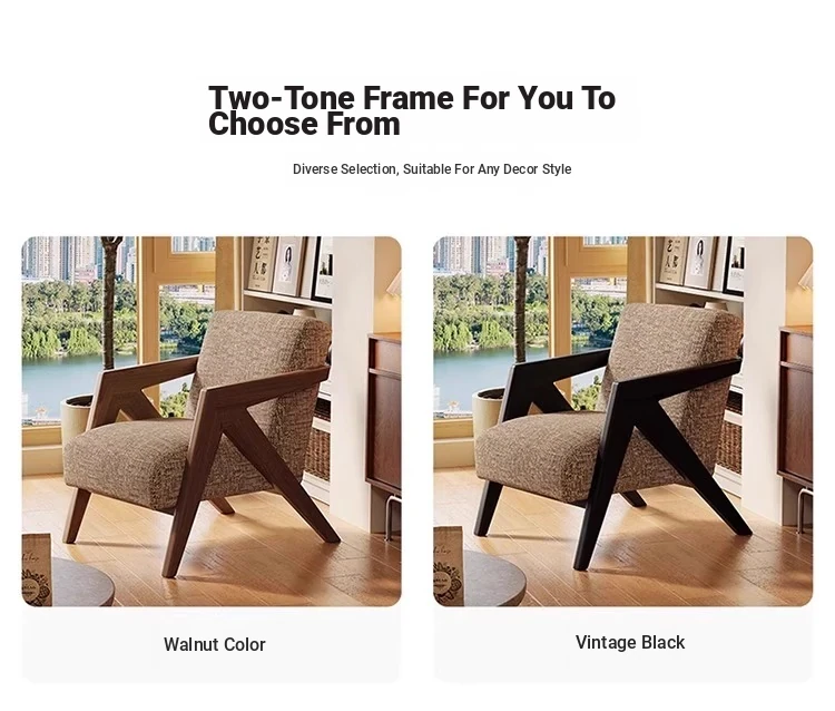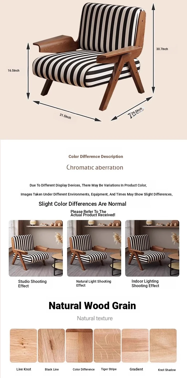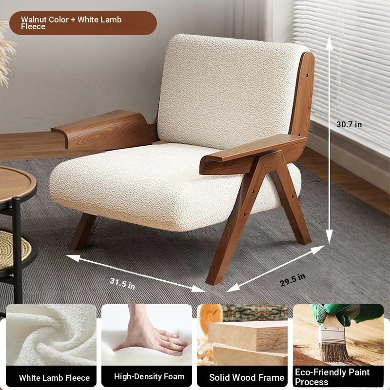 Designer Vintage French-Style Solid Wood Richard Lounge Chair - Retro Mid-Century Sofa for Living Room and Balcony Relaxation